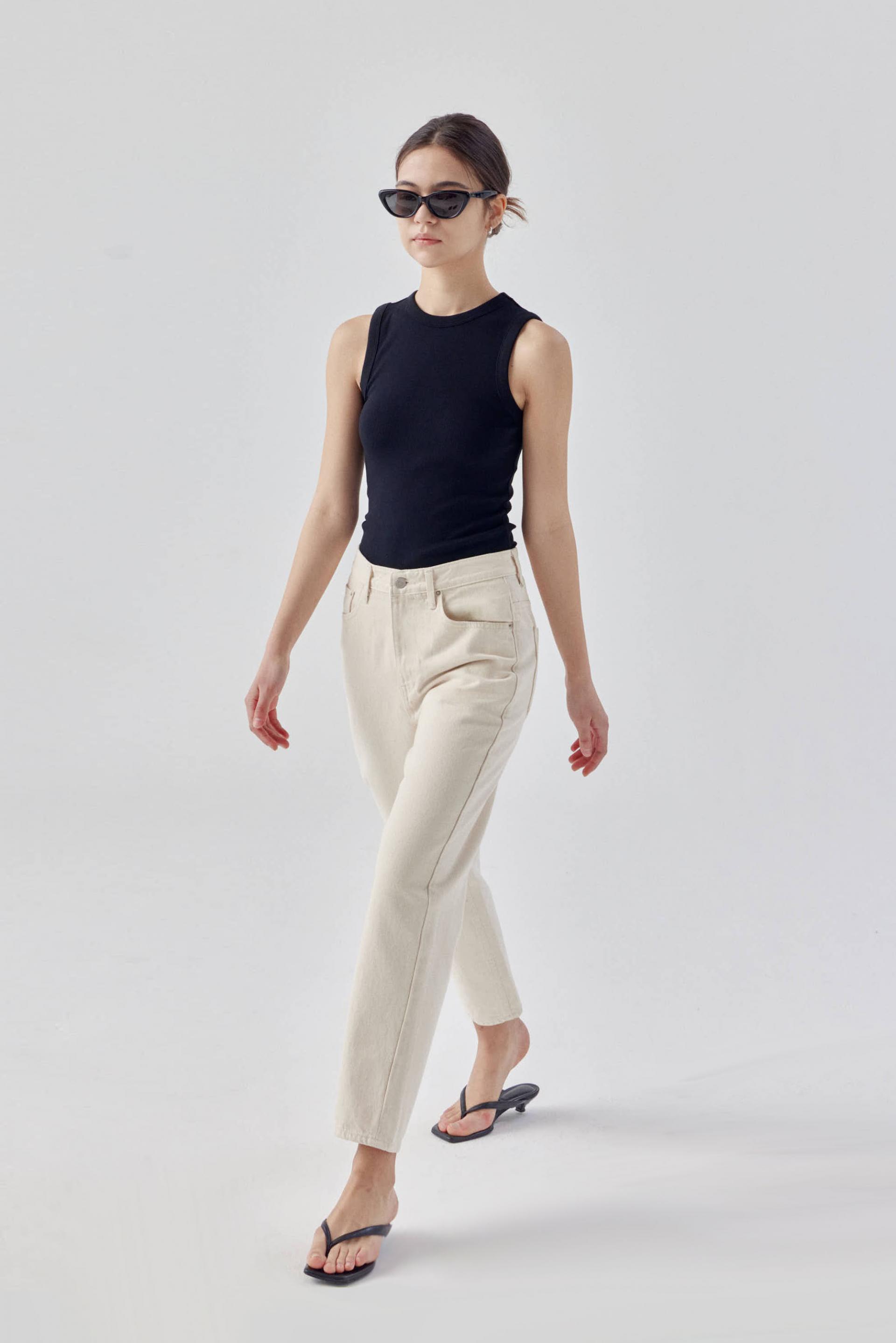 발목이 보이는 길이로 가볍고 시원한 느낌을 줍니다.