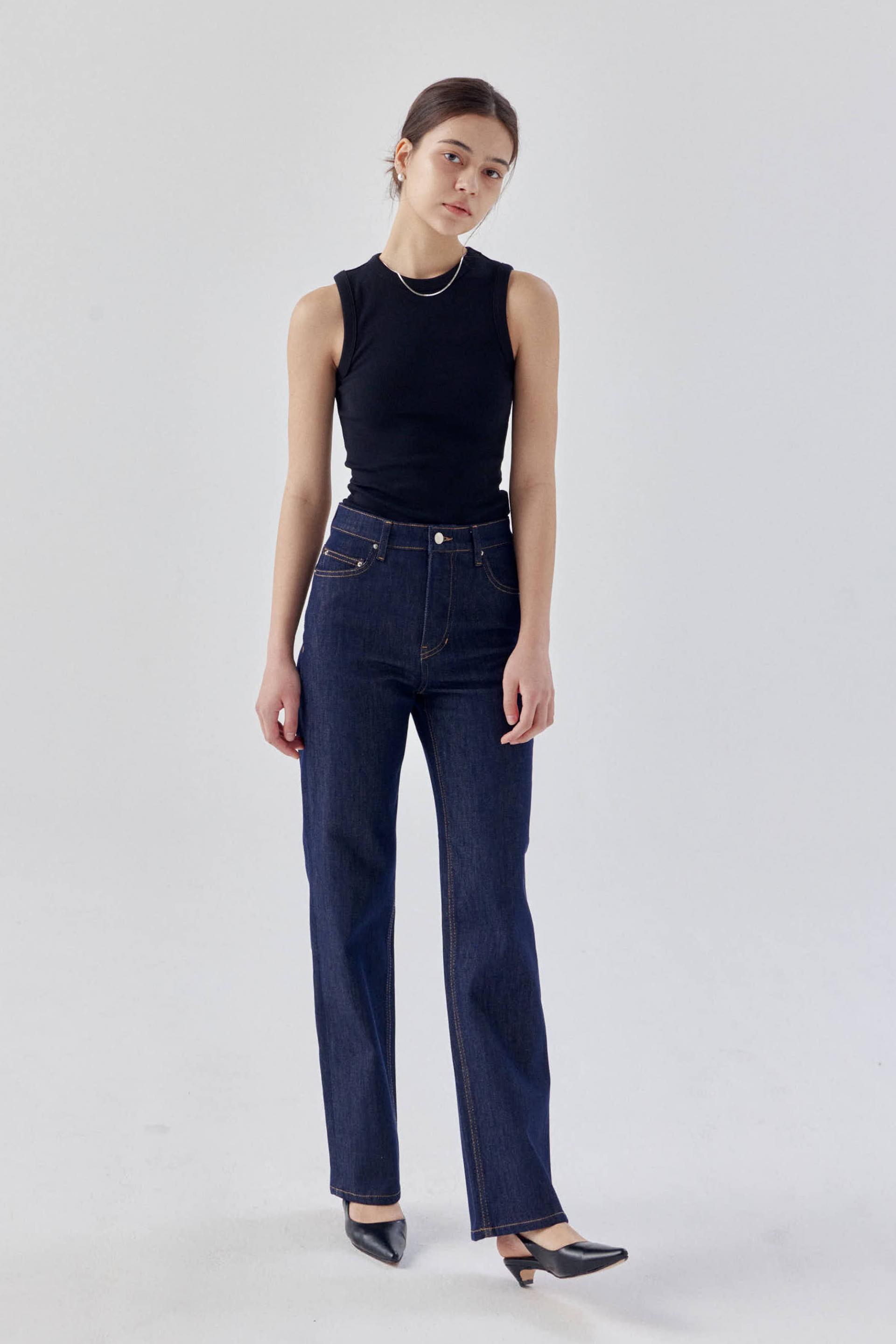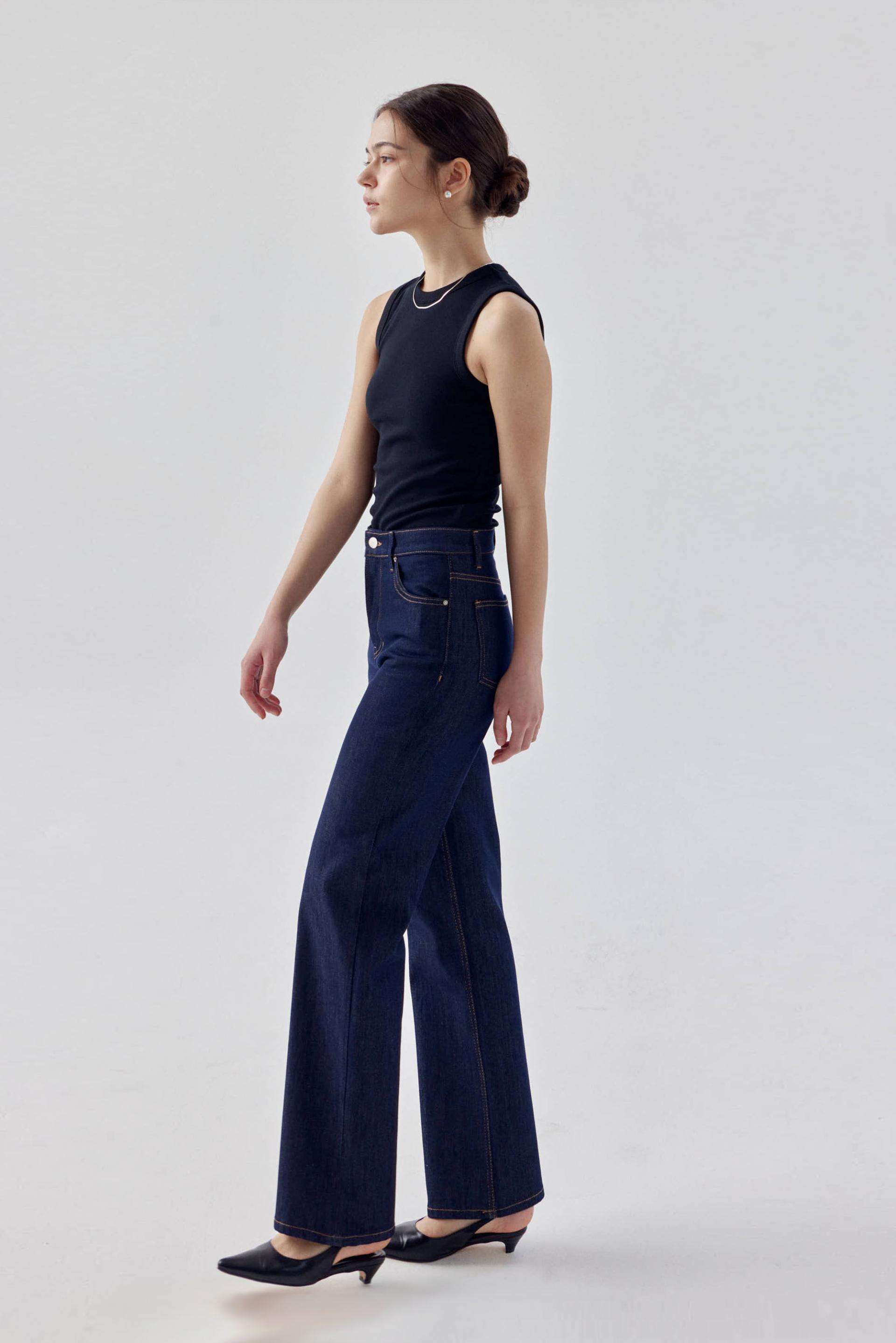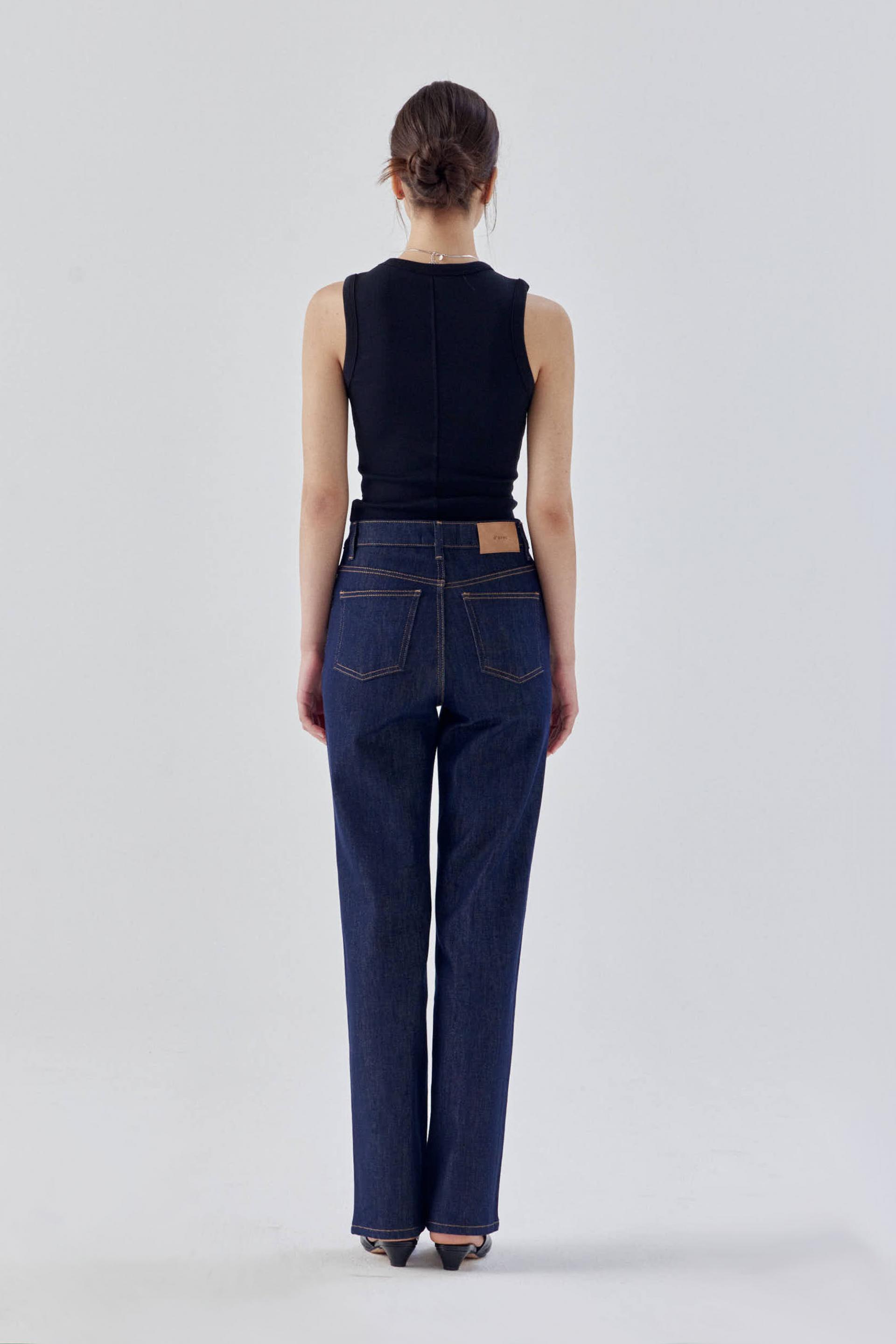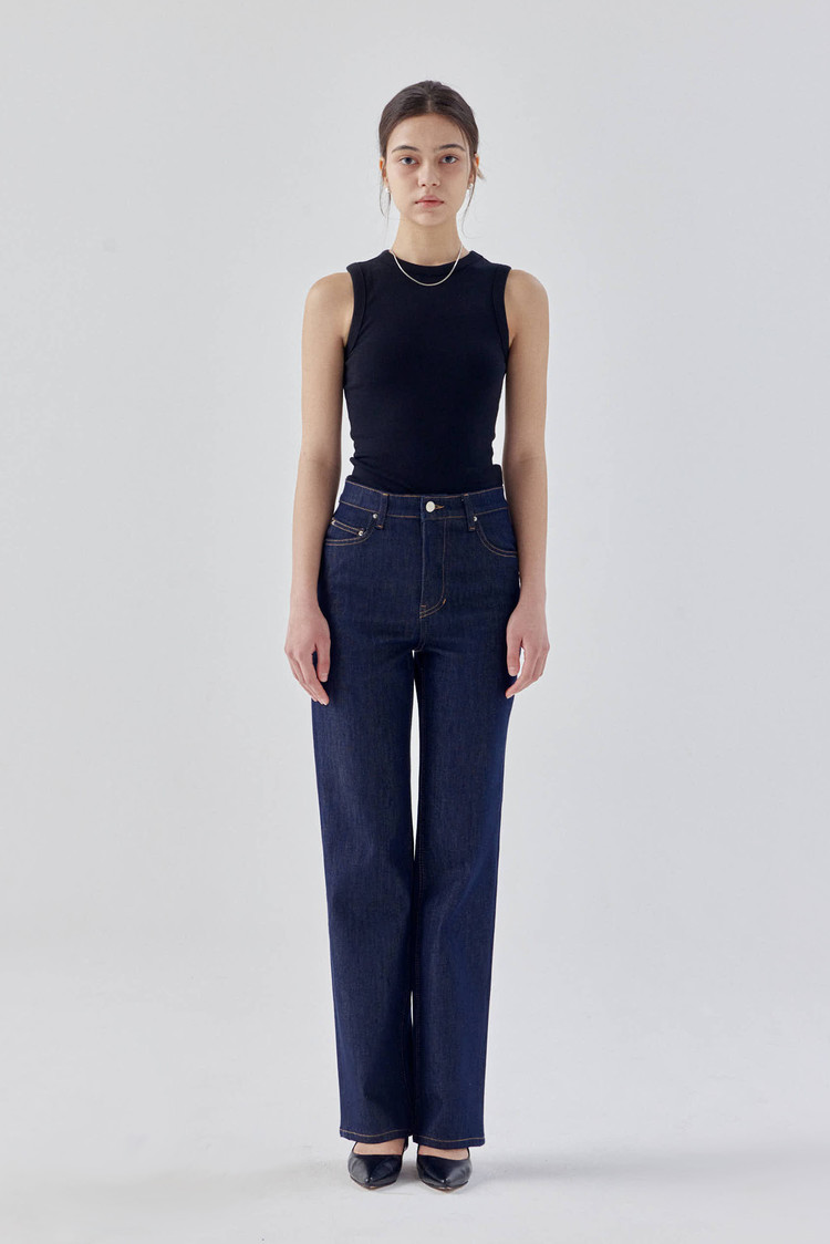 탄탄한 스트레치 소재로 군살을 잡아주어 매끈하고 슬림한 라인을 보여주는 논페이드 일자 데님입니다.