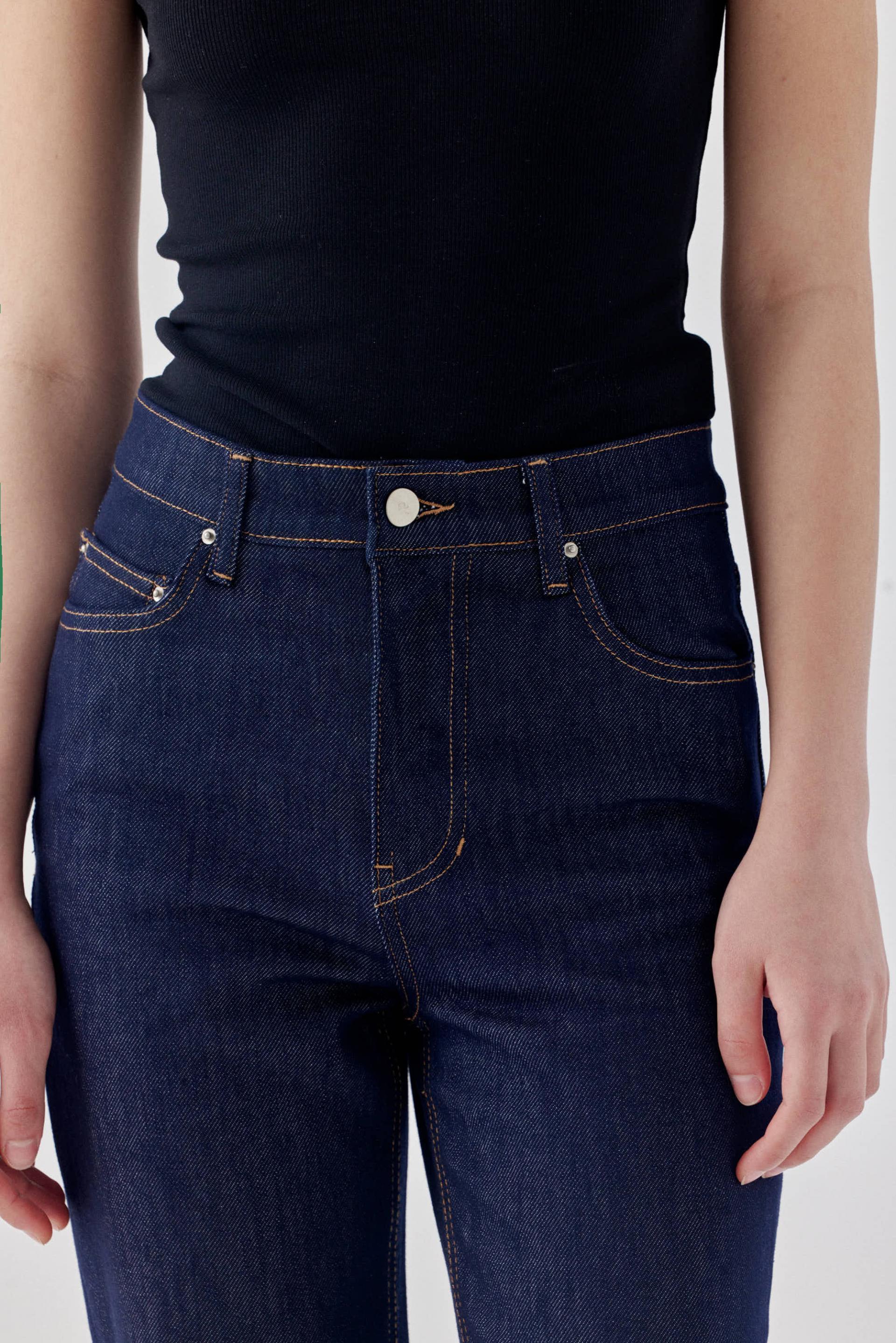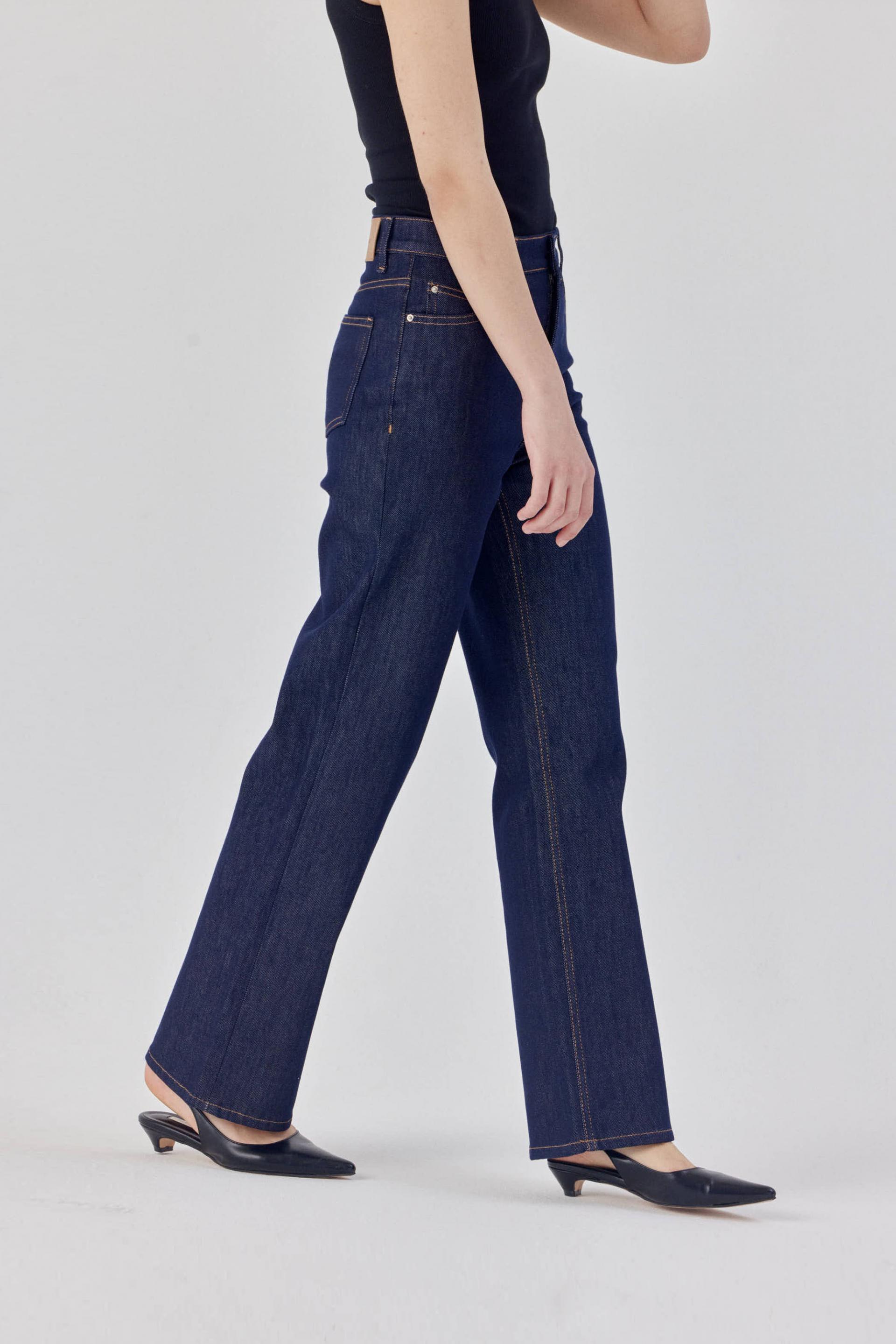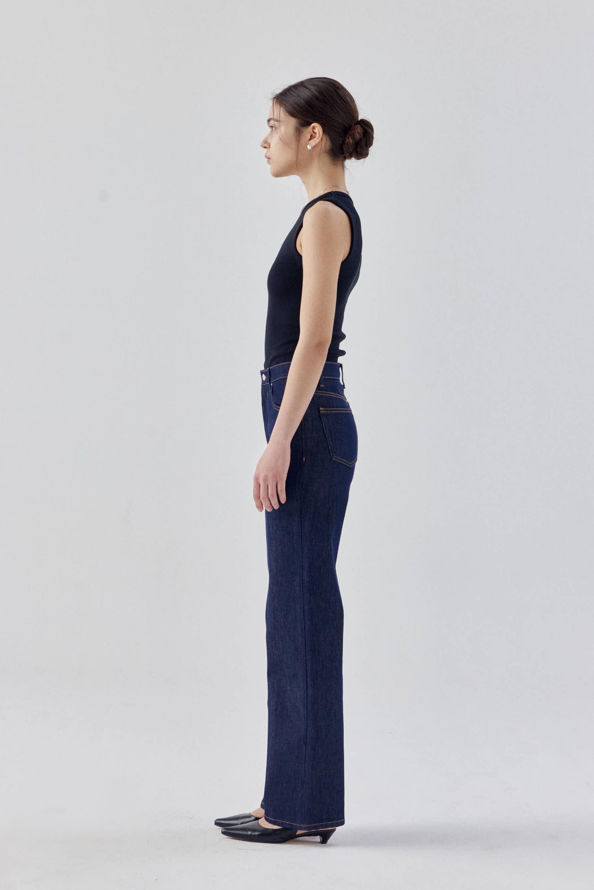 탄탄한 스트레치 소재로 군살을 잡아주어 매끈하고 슬림한 라인을 보여주는 논페이드 일자 데님입니다.