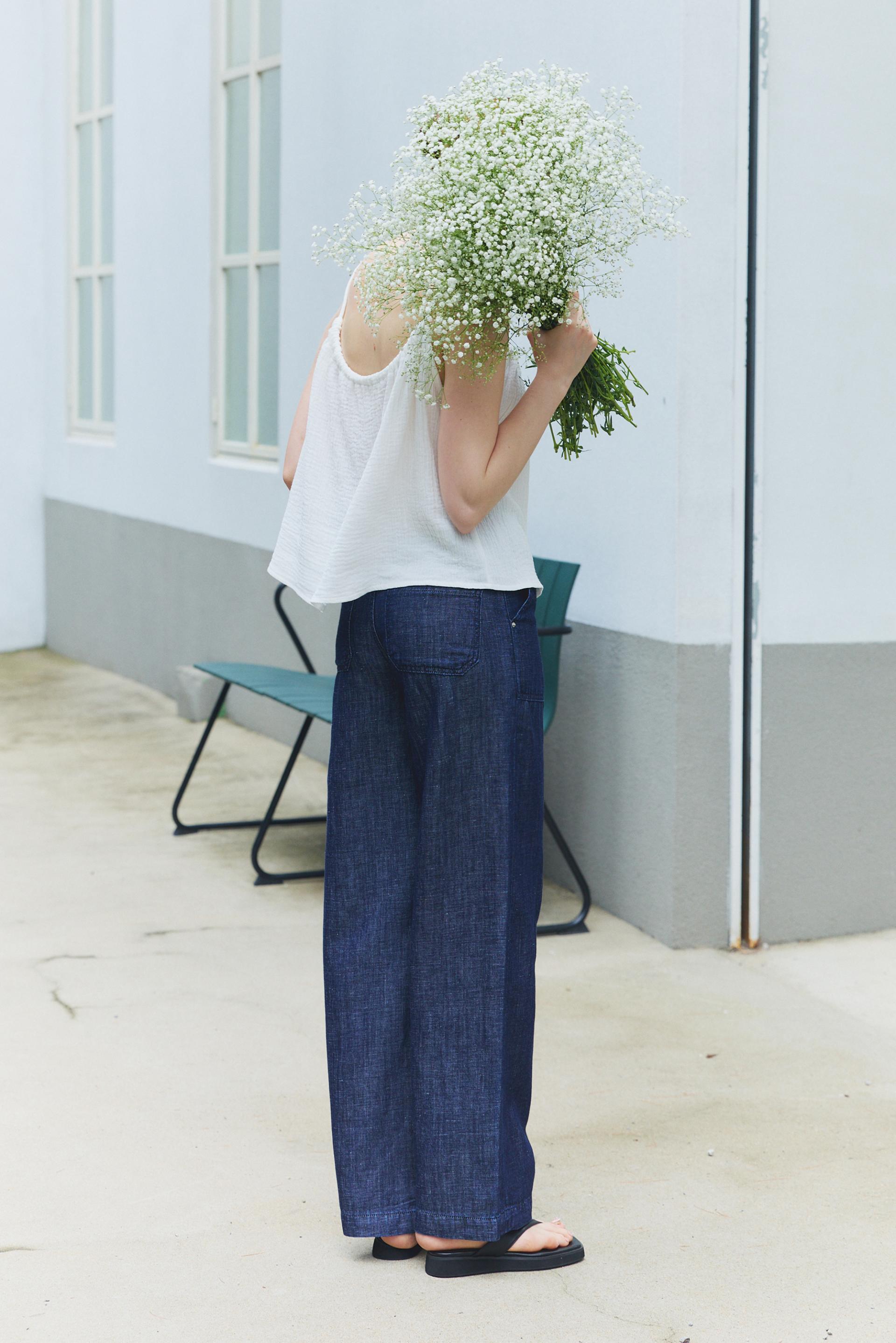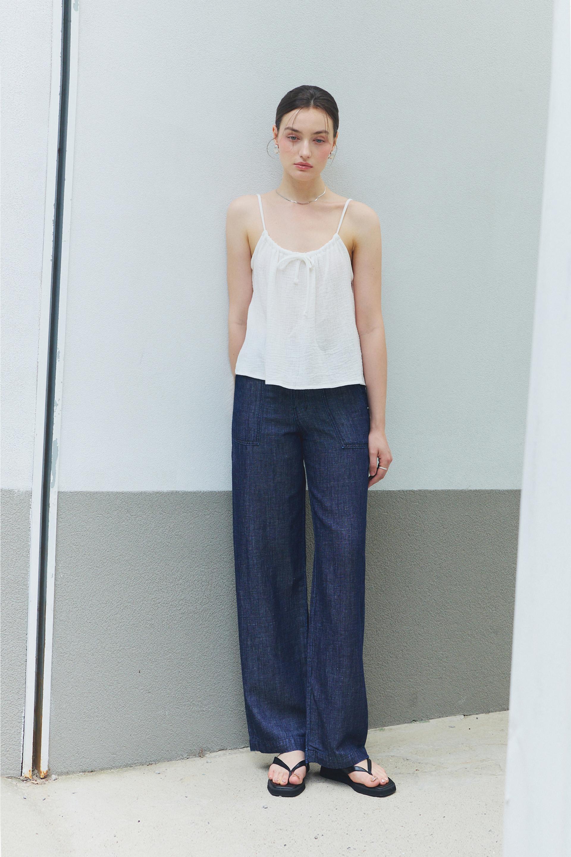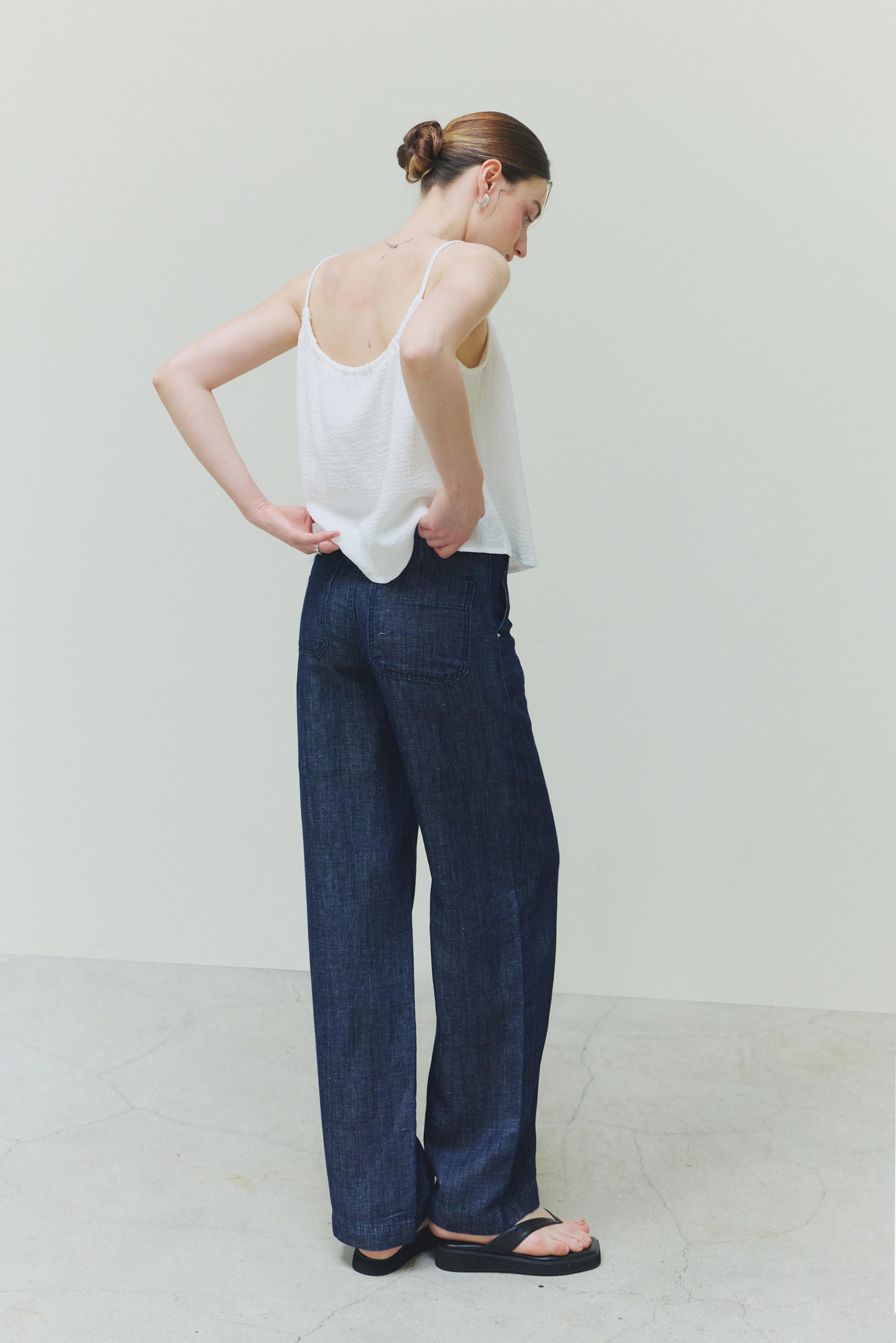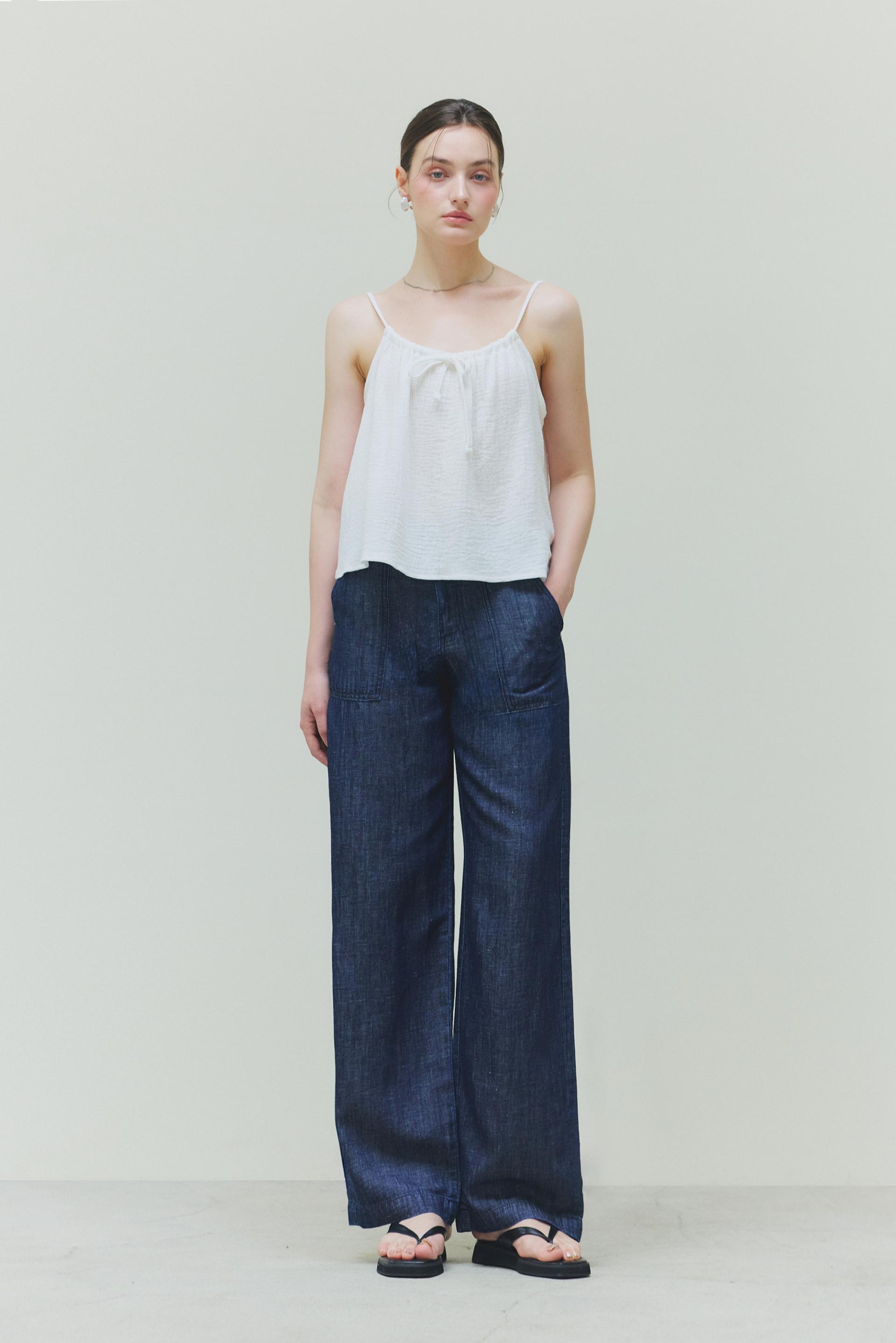 힙라인부터 일자로 떨어지는 실루엣이 다리라인을 길고 곧게 연출해줍니다. 여유로운 실루엣과 내츄럴한 감각으로 일상에 편안함을 즐겨보세요.