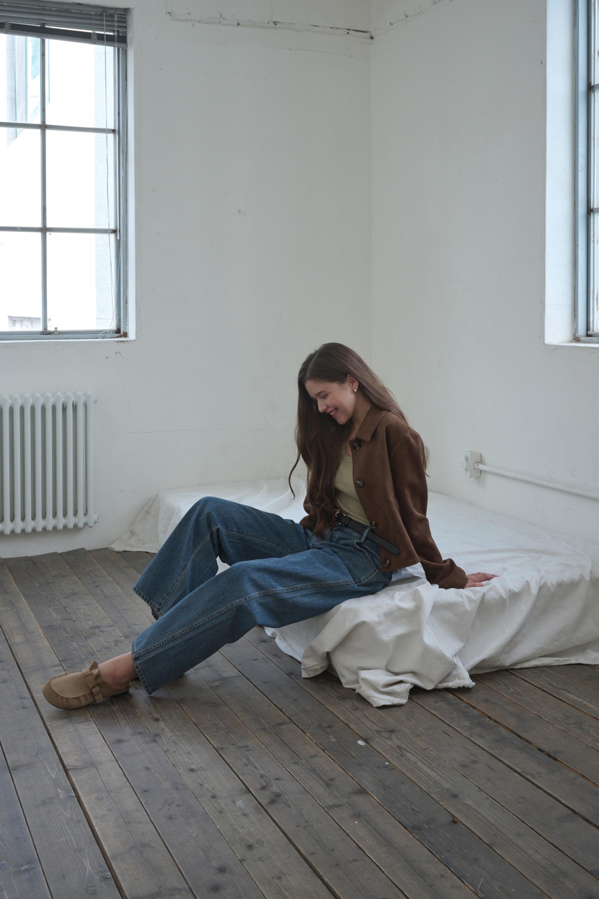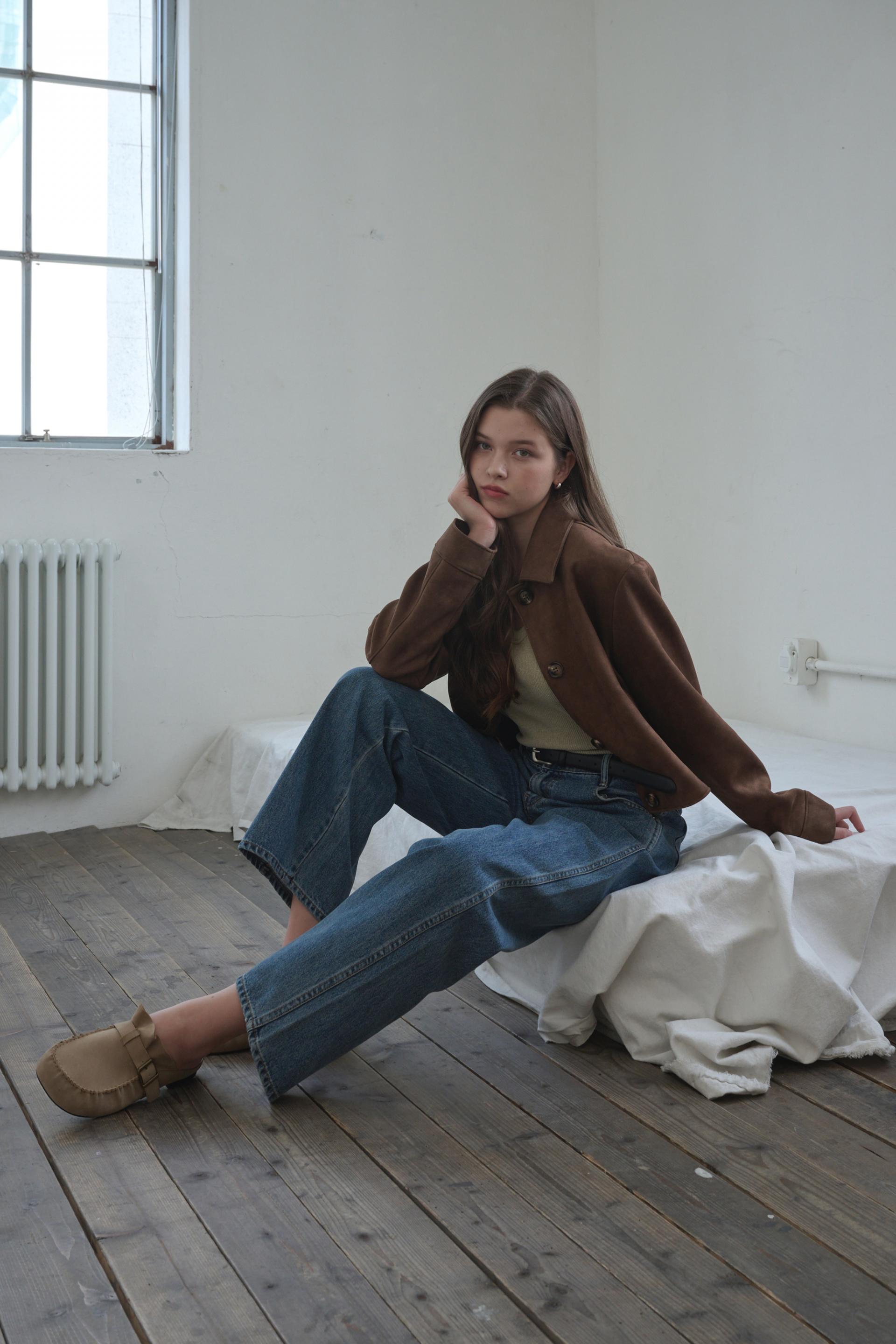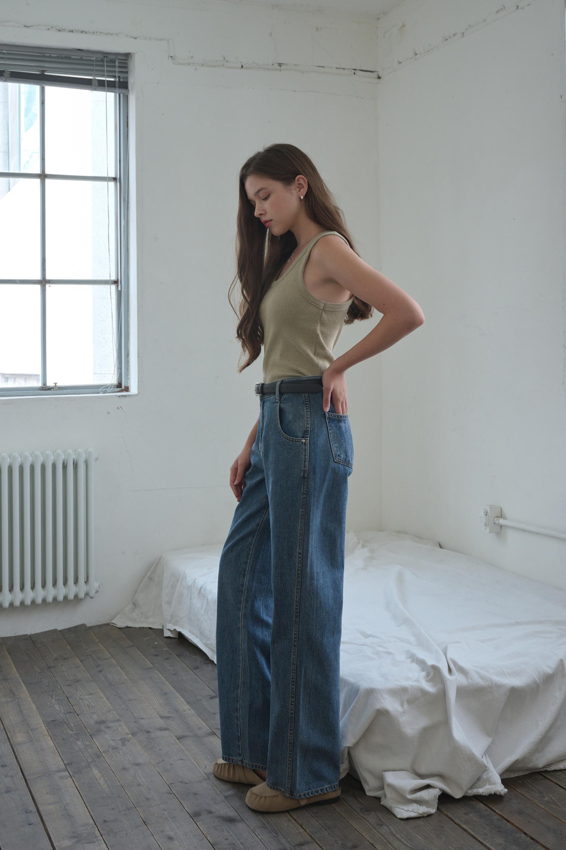 일반적인 밑위보다 낮은 밑위로 제작되어 골반에 걸쳐 입어주면 더욱 멋스러운 핏으로 연출하실 수 있습니다.
