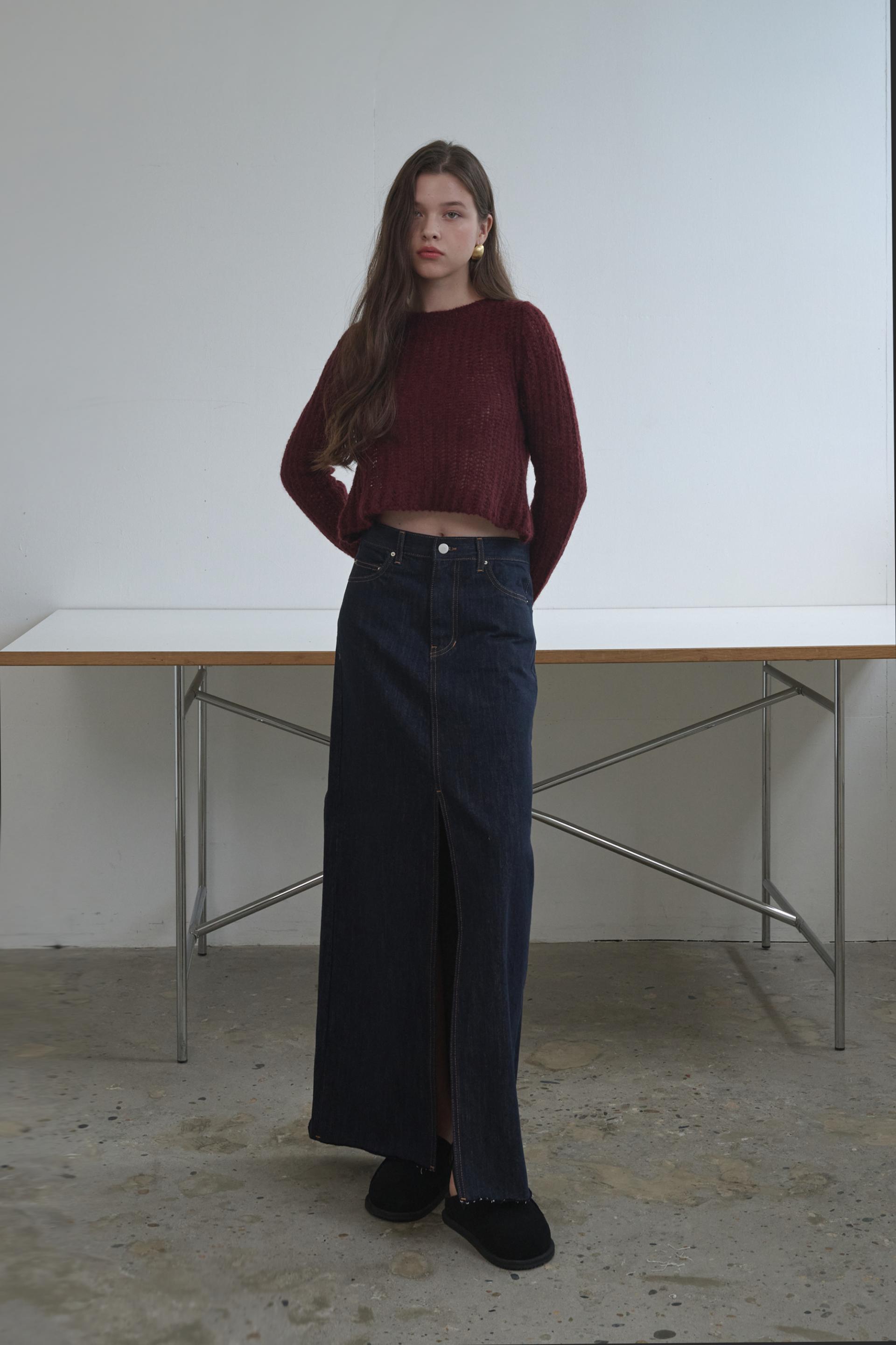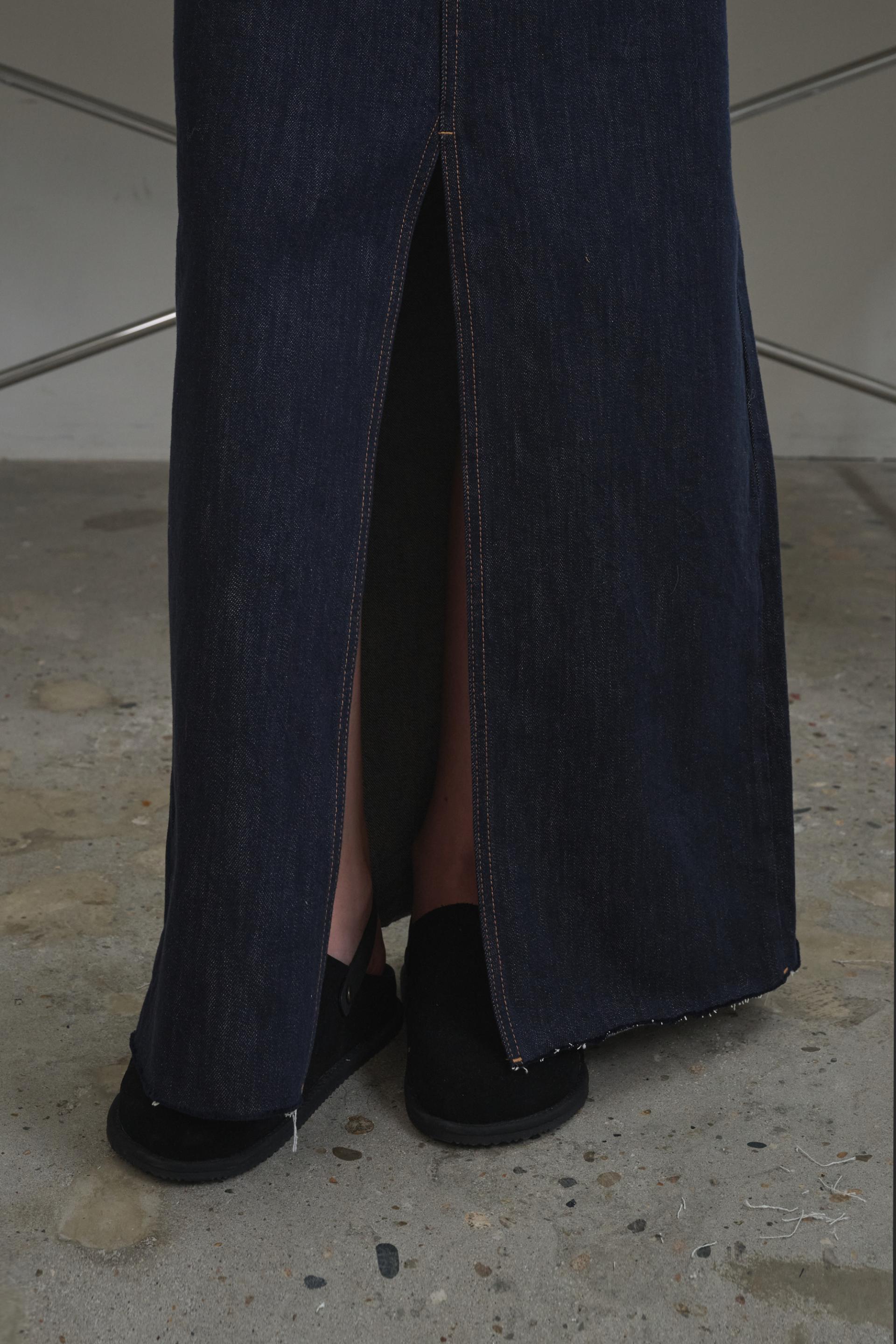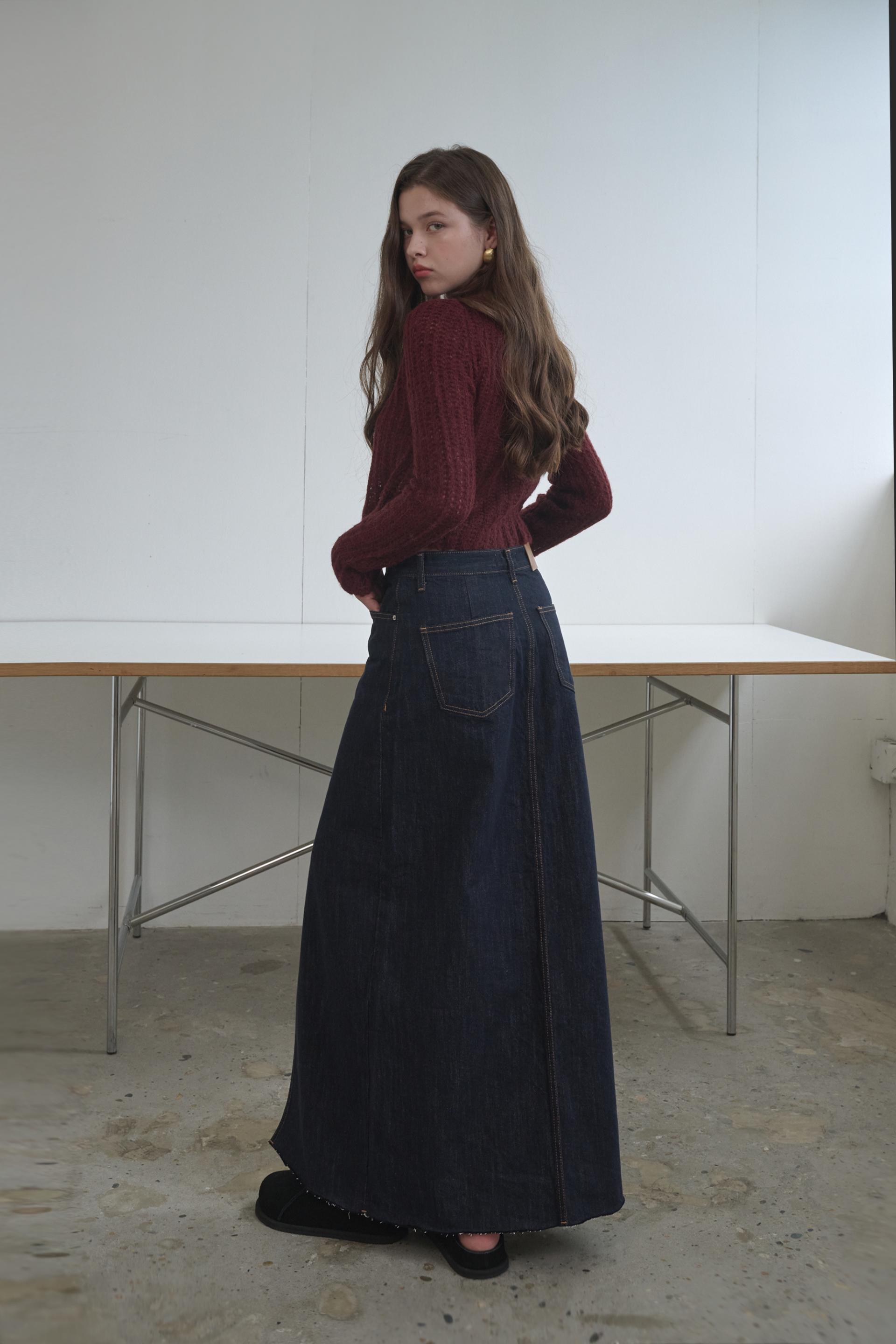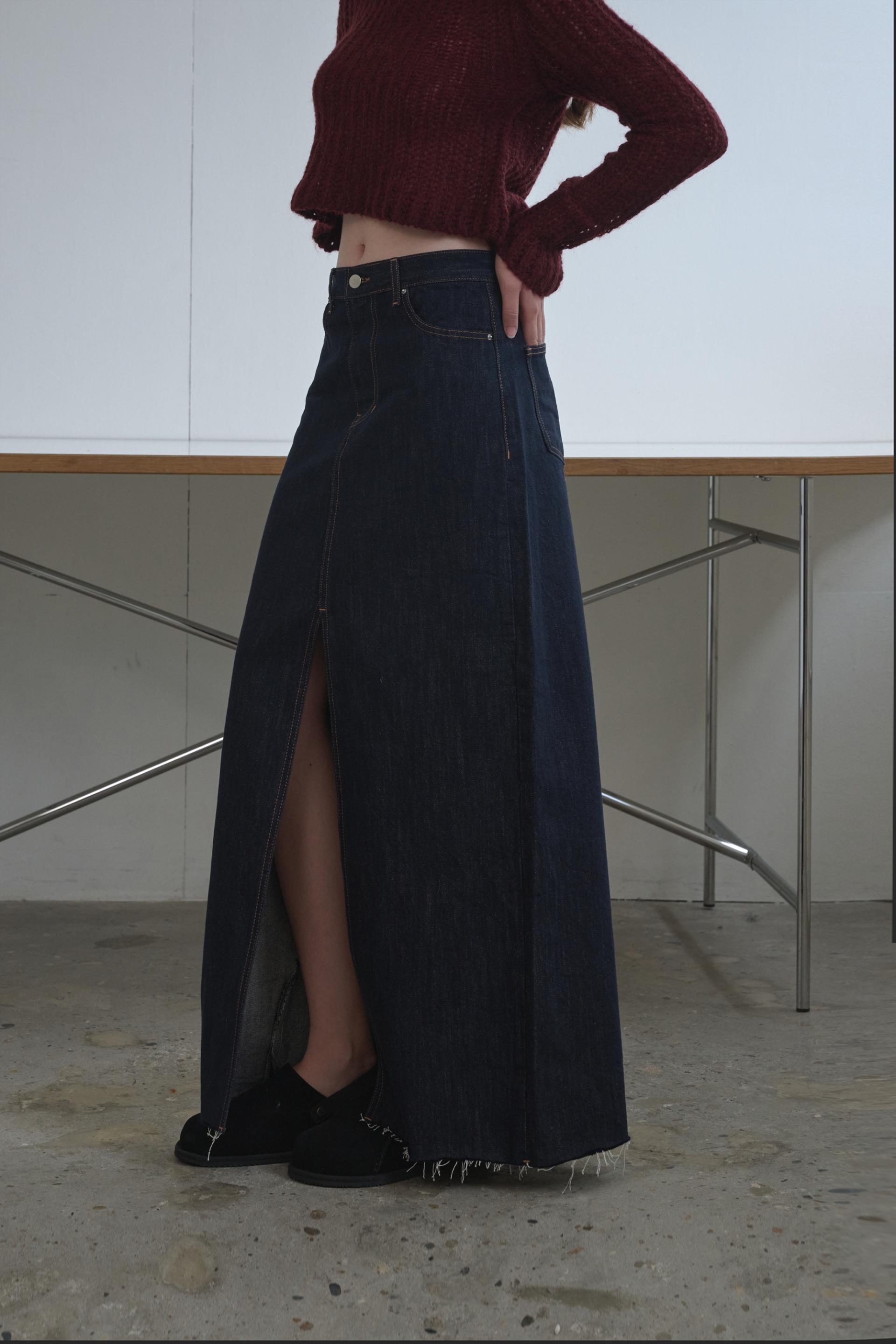 차가운 공기의 도심속에서 쿨하고 감각적인 존재감을 드러내는 그레이스 맥시 데님 스커트 입니다.