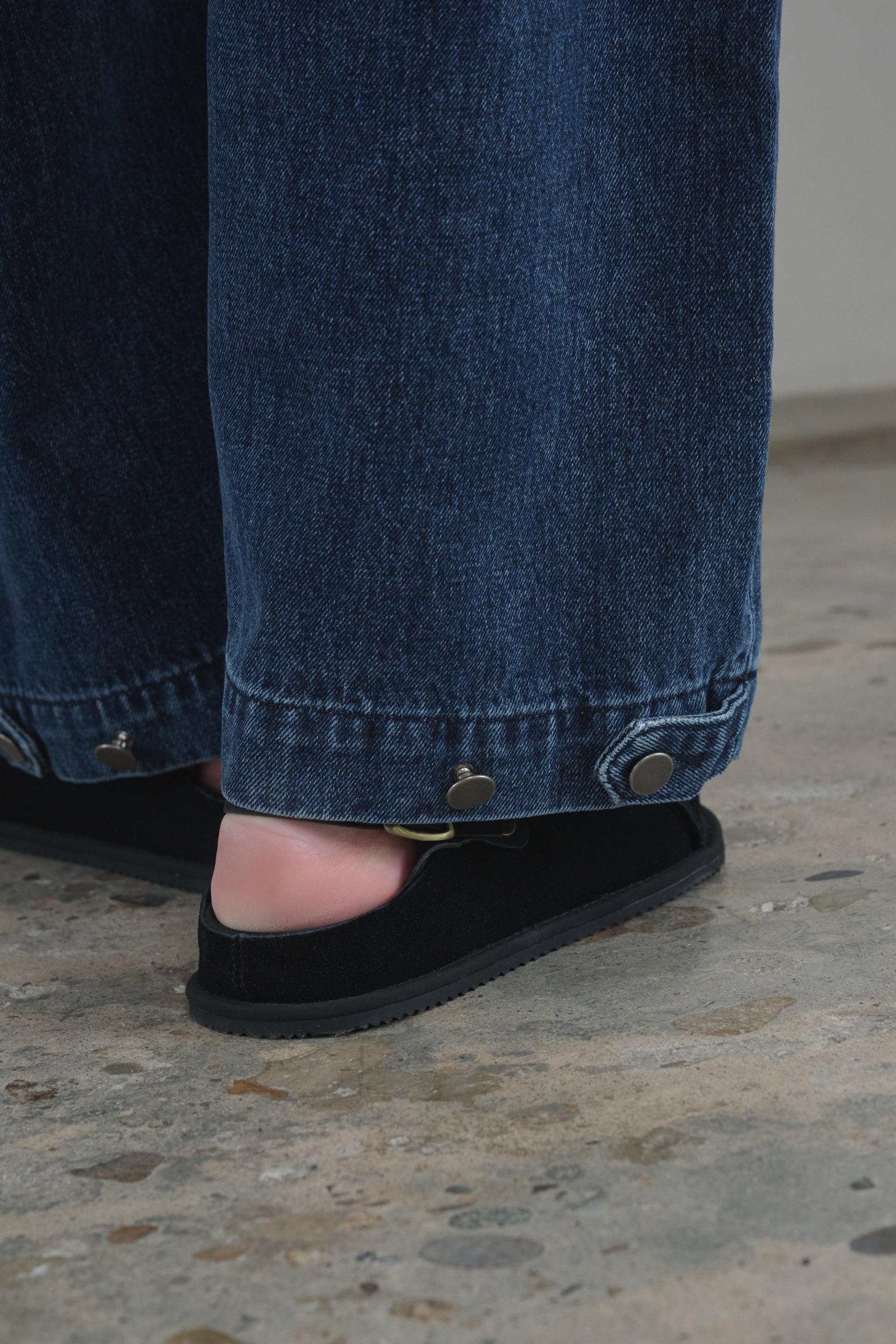 밑단의 비조 단추 여밈 디테일로 핏을 조절해 하루의 분위기나 스타일에 따라 투웨이 실루엣을 완성할 수 있는 감각적인 카펜터진입니다.