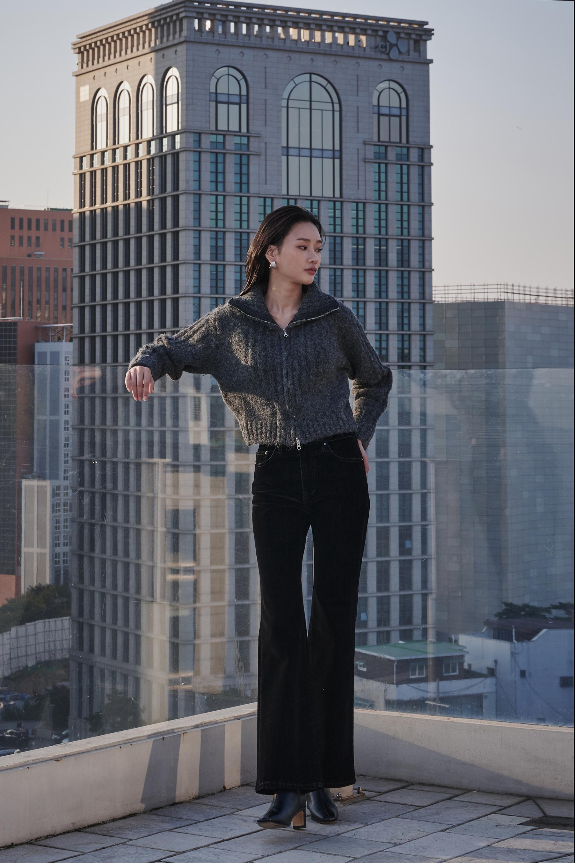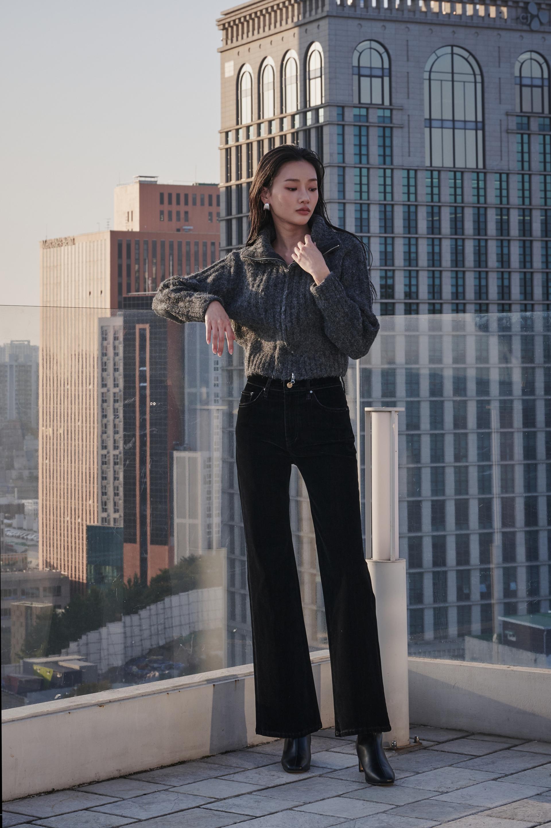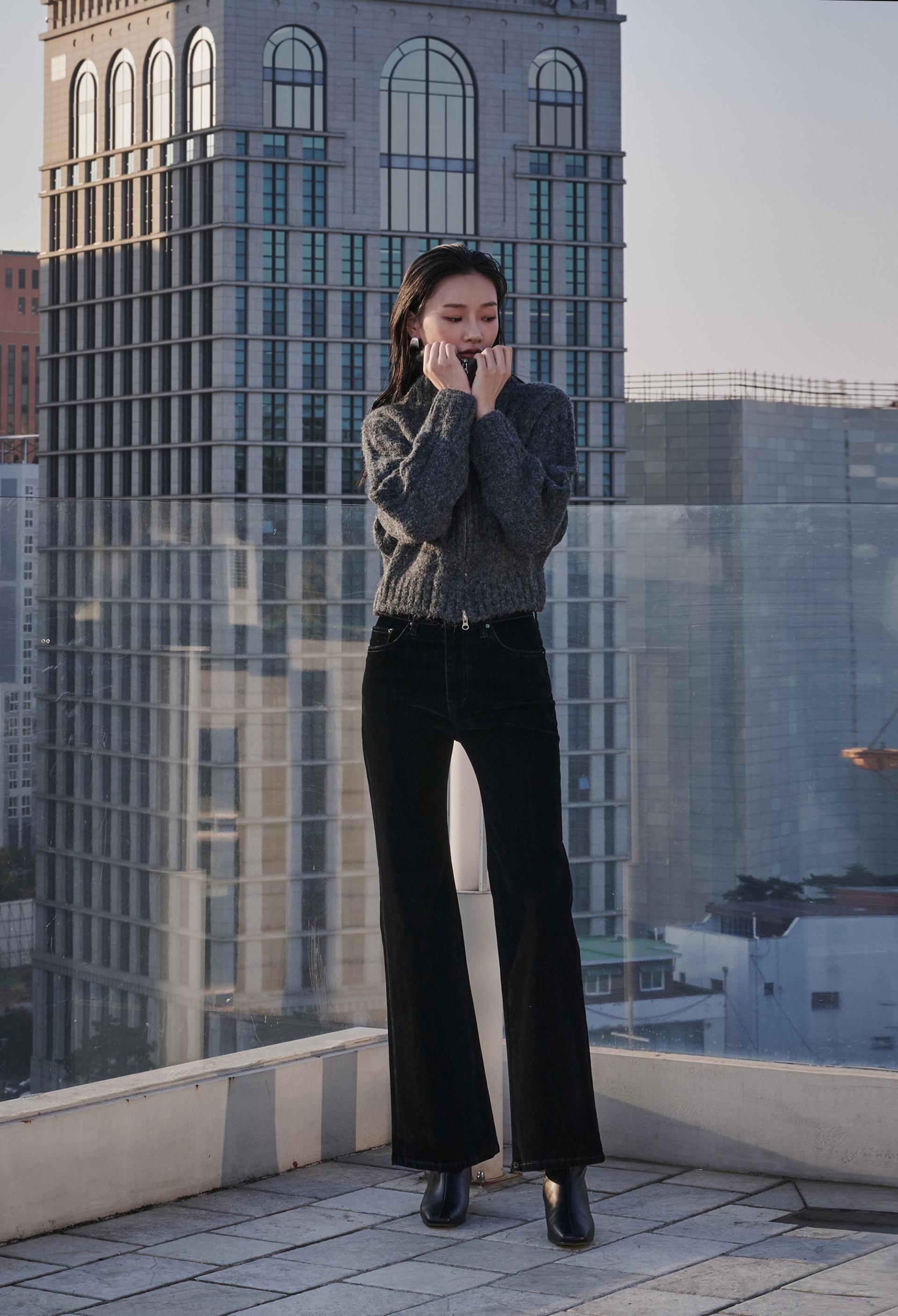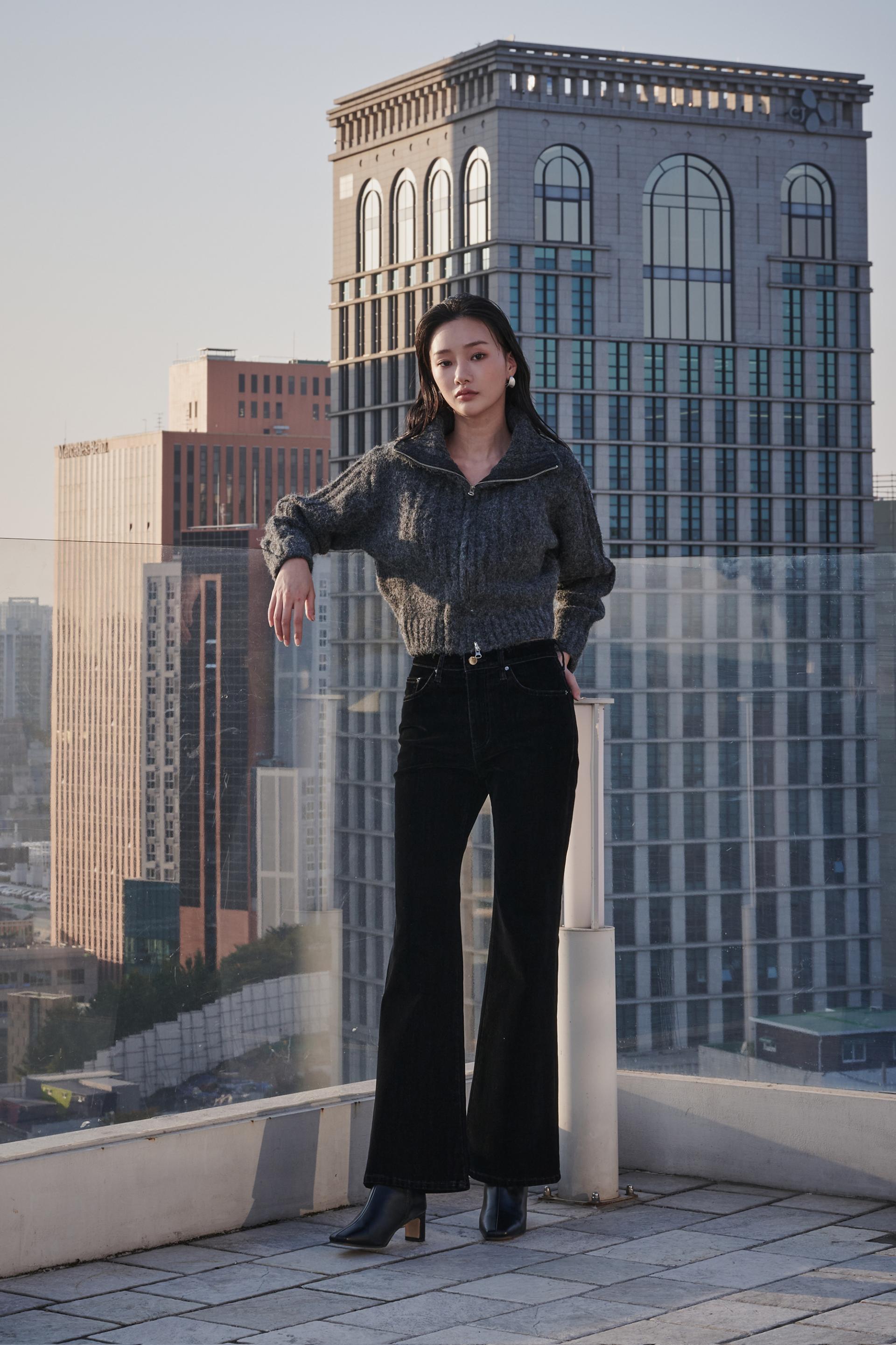 허리부터 힙 라인은 슬림하게 잡아주고 ,무릎 아래로 자연스럽게 퍼지는 부츠컷 실루엣이 다리를 길어보이게 연출해 줍니다.