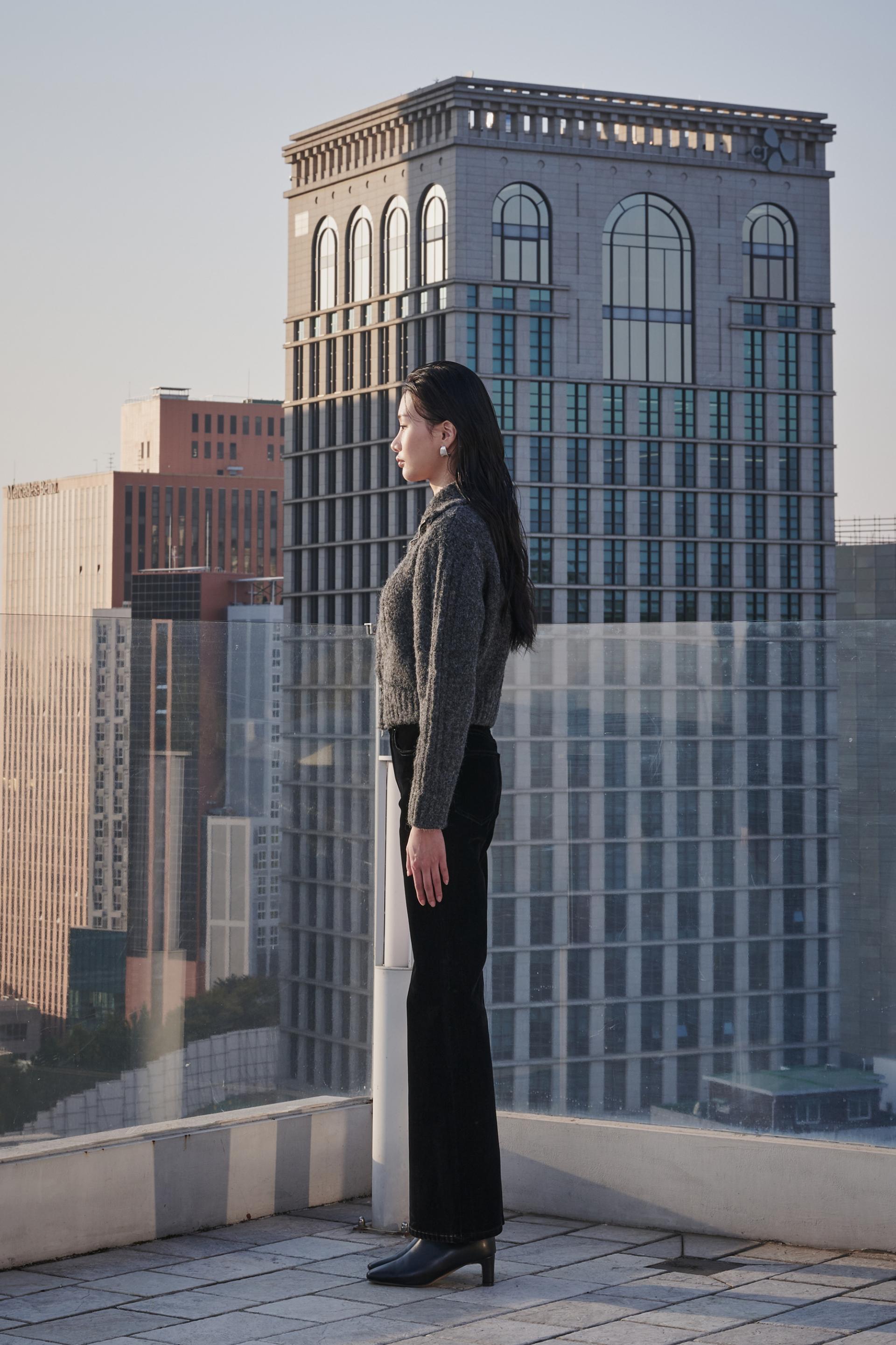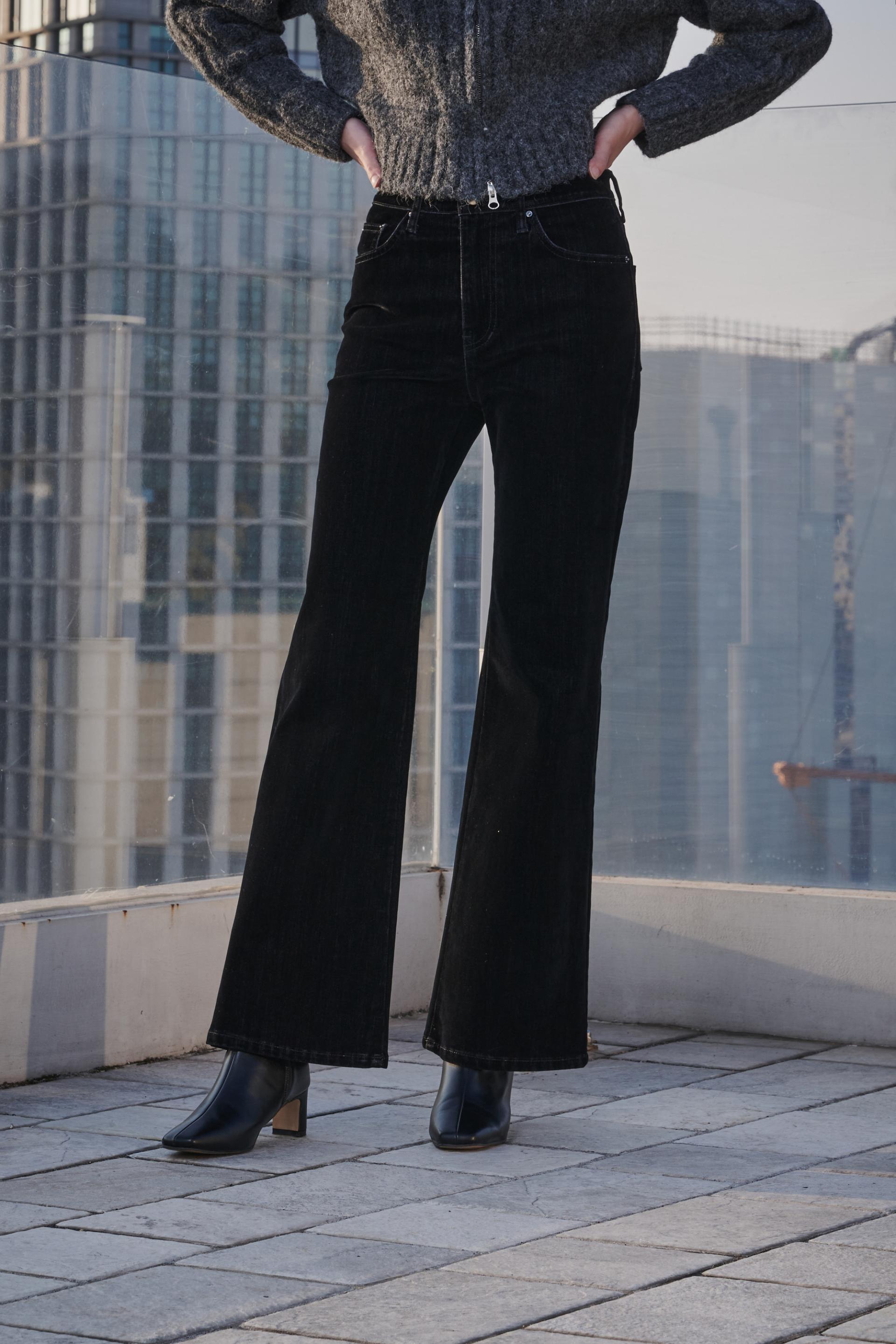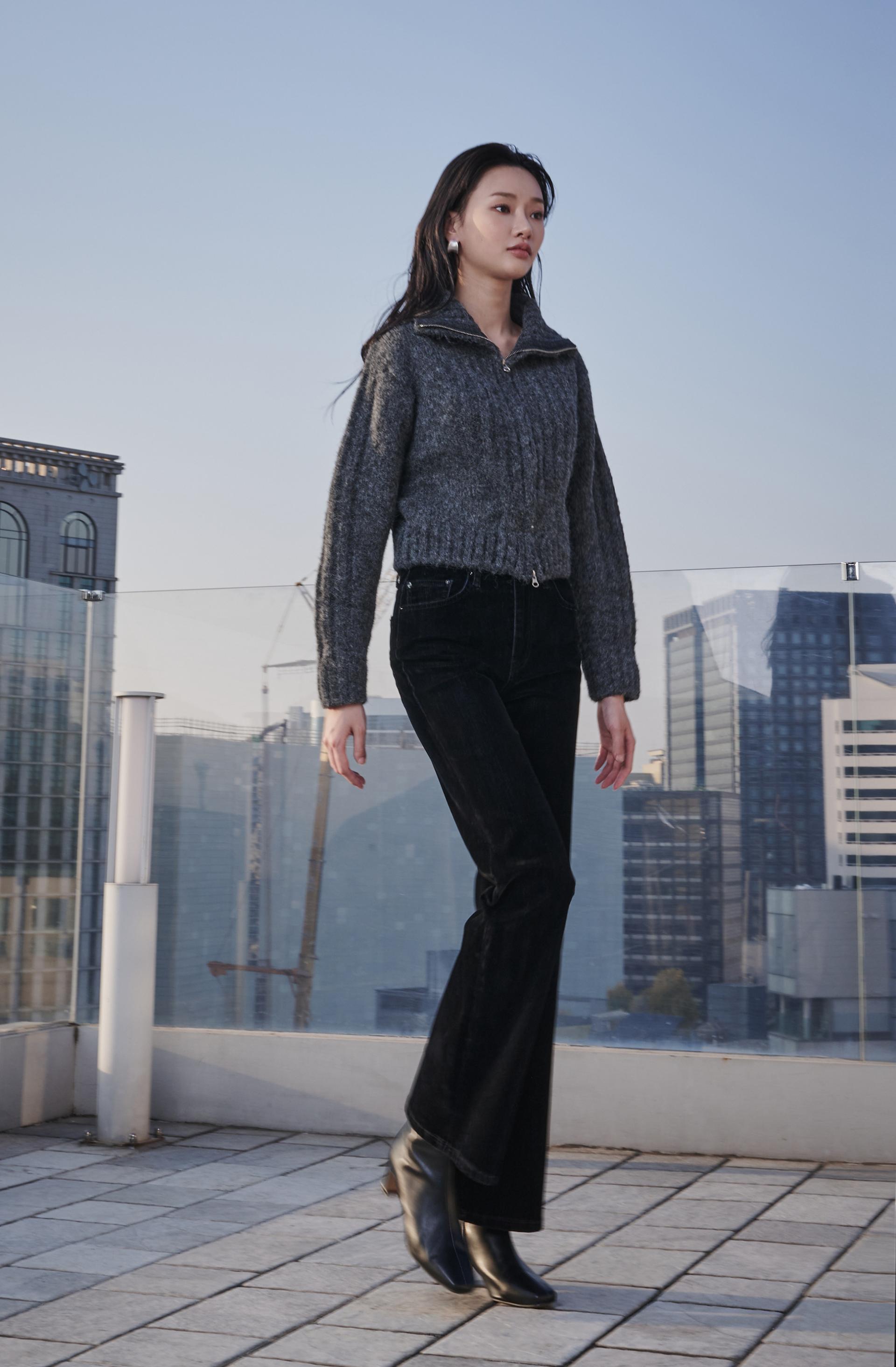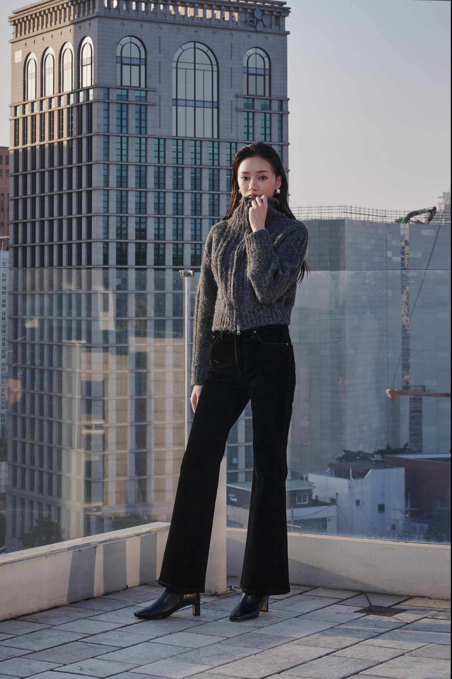 허리부터 힙 라인은 슬림하게 잡아주고 ,무릎 아래로 자연스럽게 퍼지는 부츠컷 실루엣이 다리를 길어보이게 연출해 줍니다.