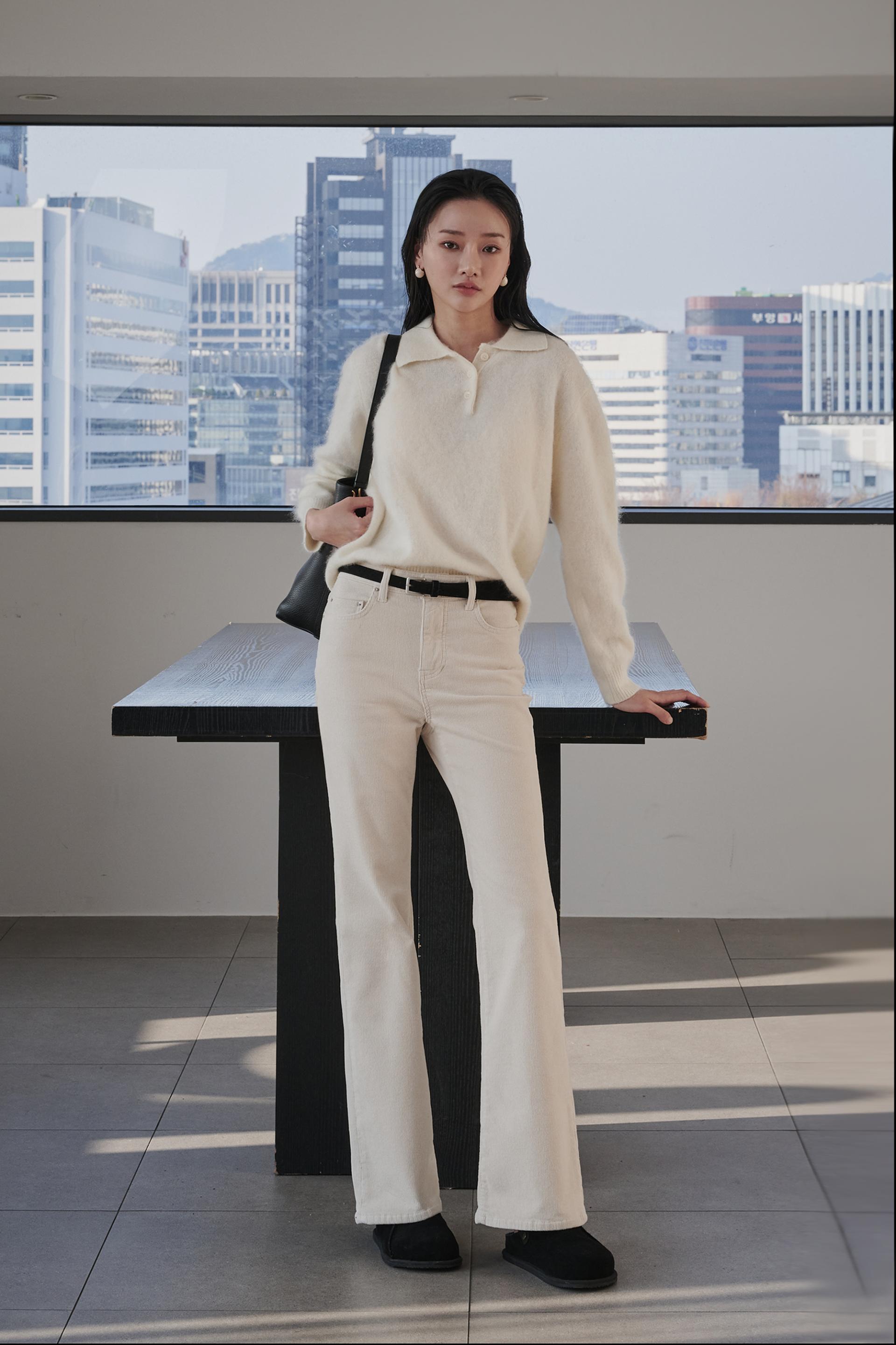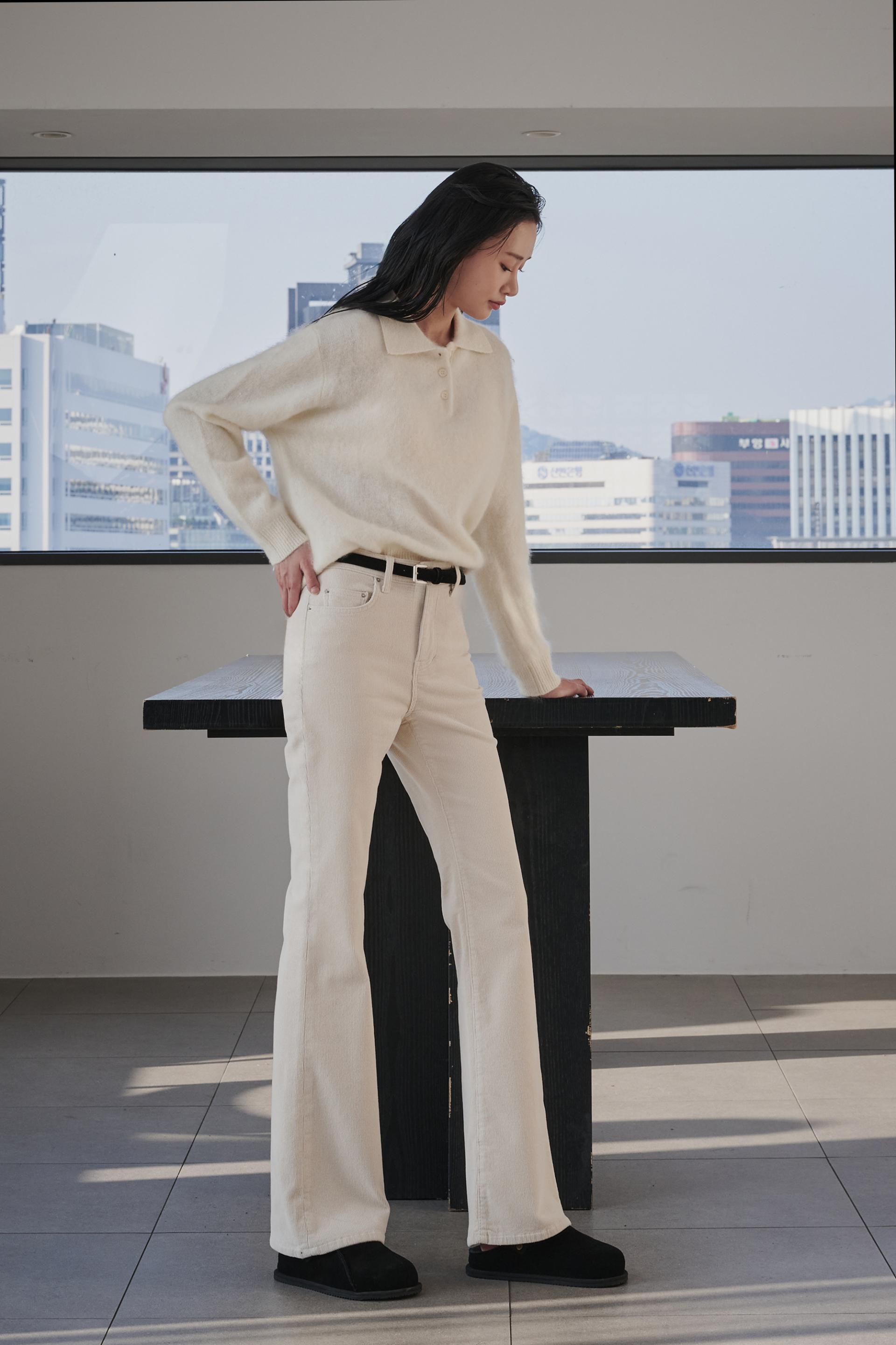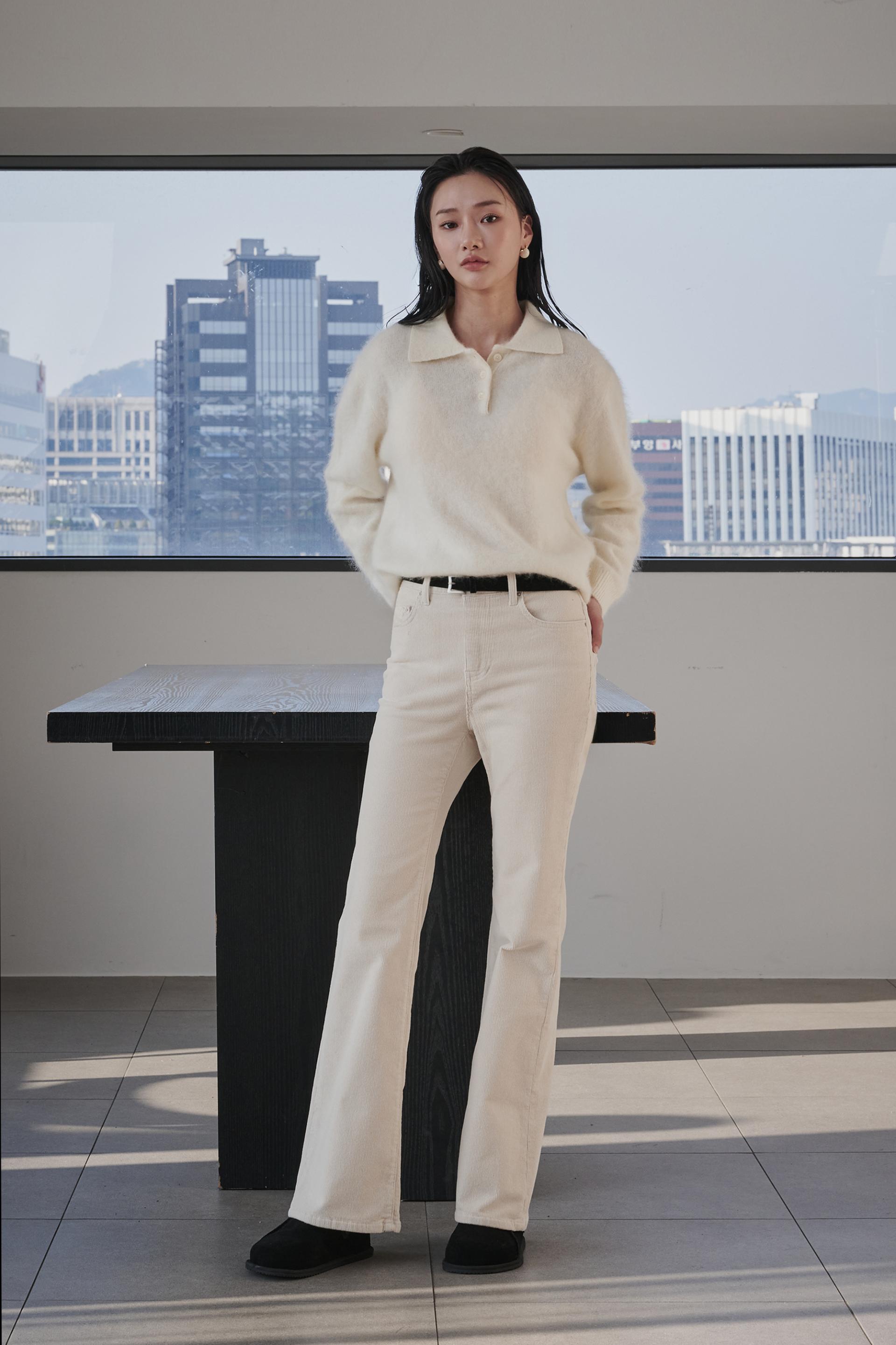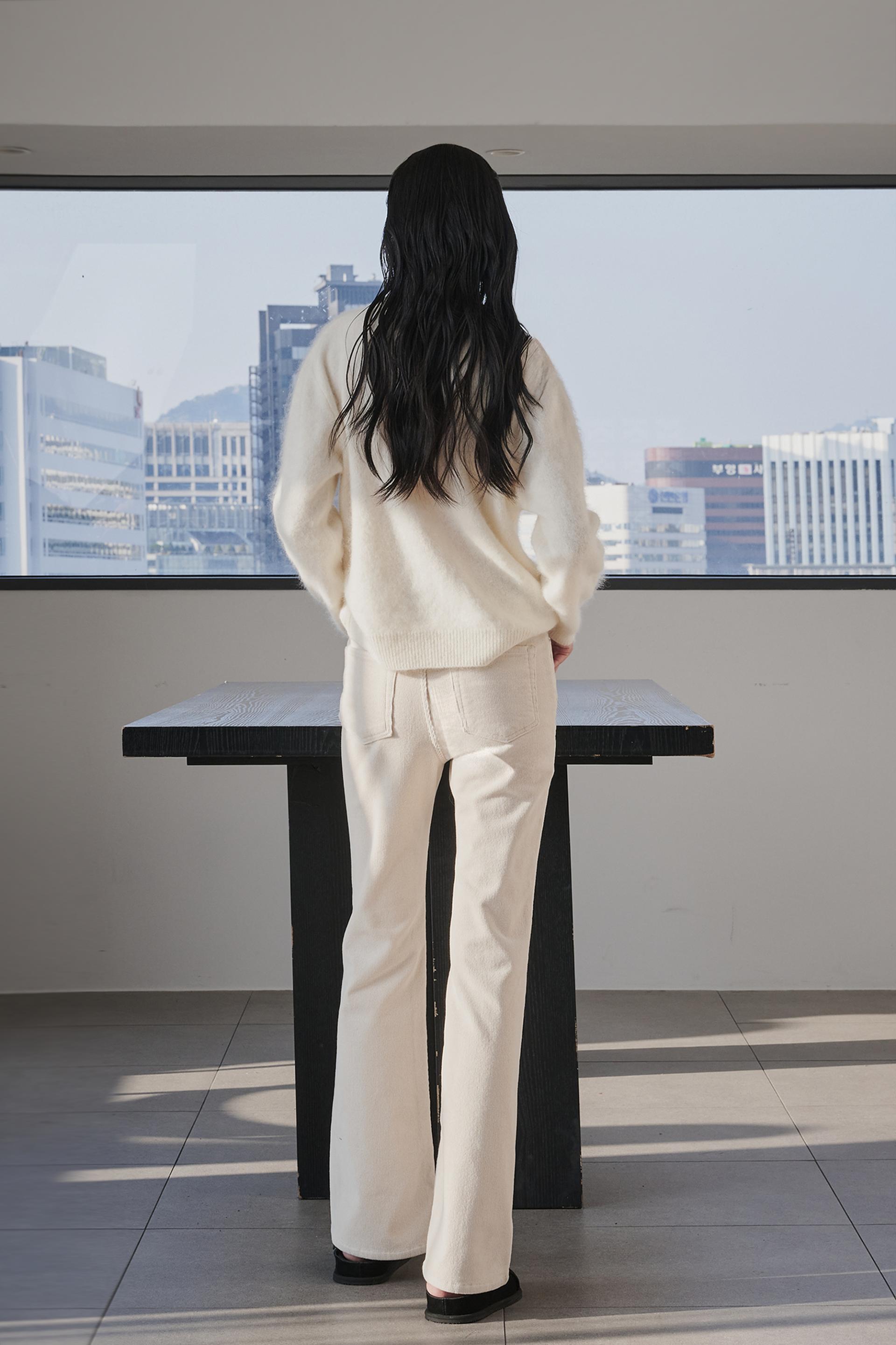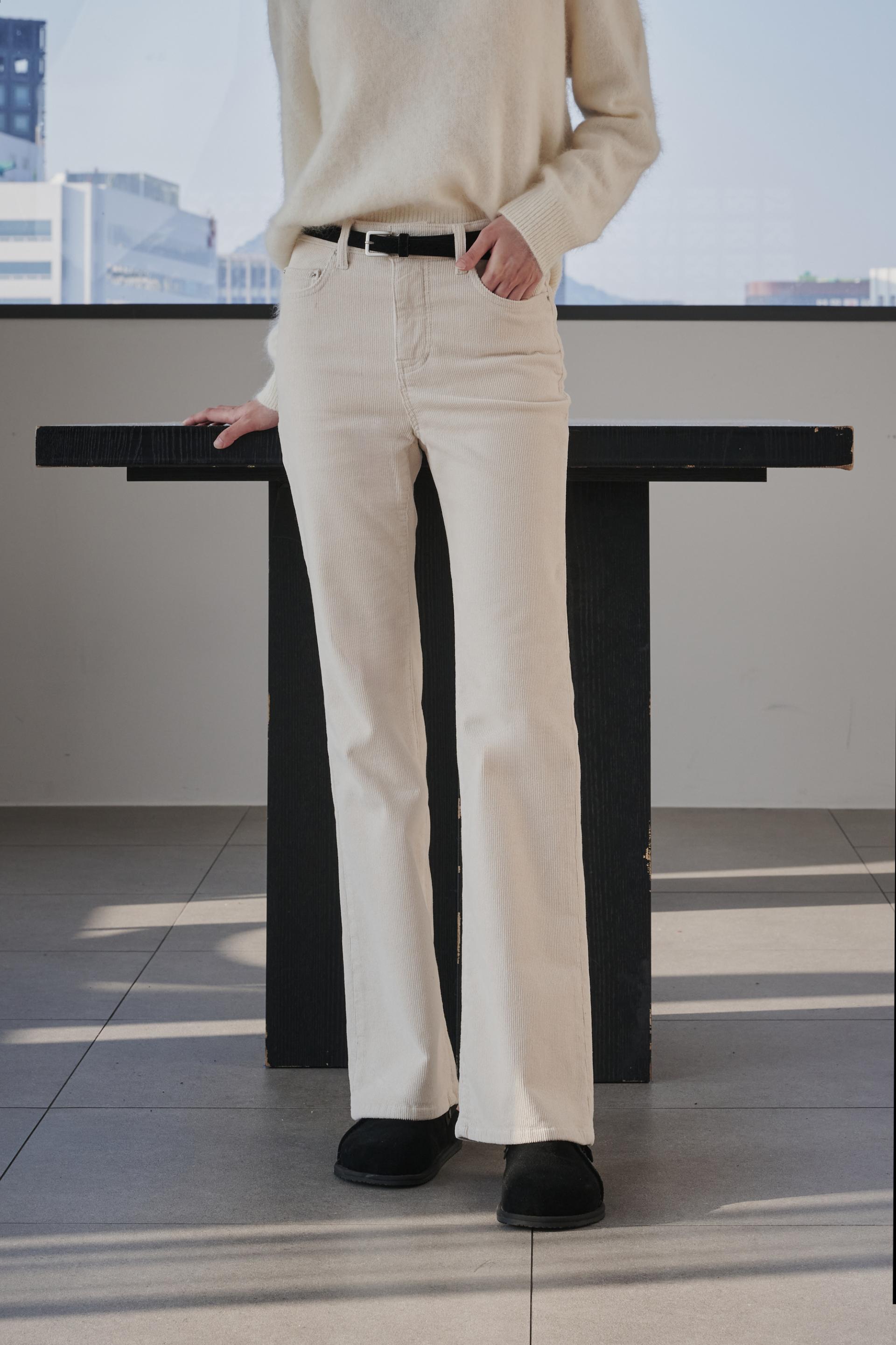 차분함과 포근함 그리고 맑은 아이보리의 고급스러움까지 섬세함이 살아있는 겨울 코듀로이 부츠컷진 입니다.