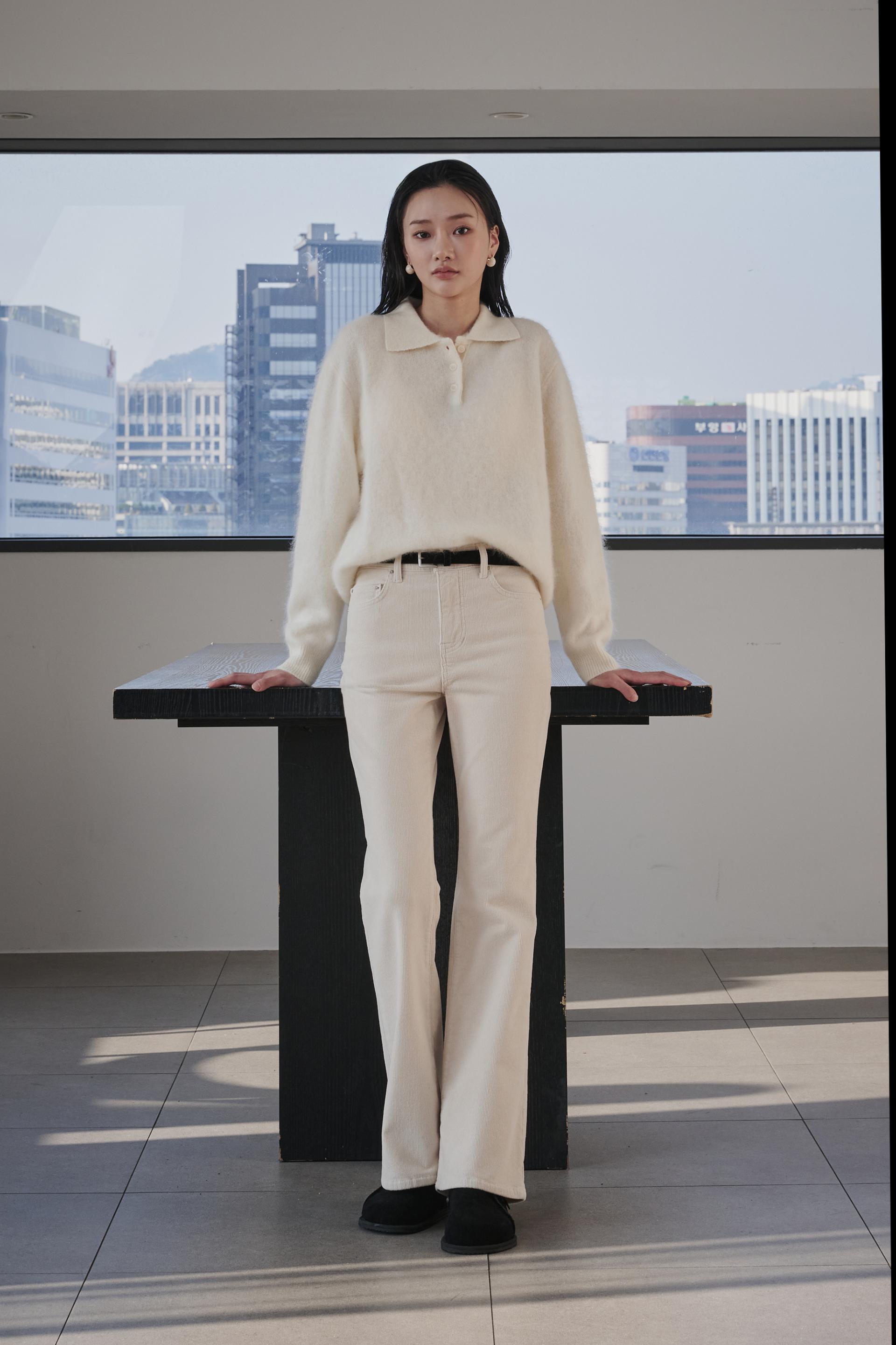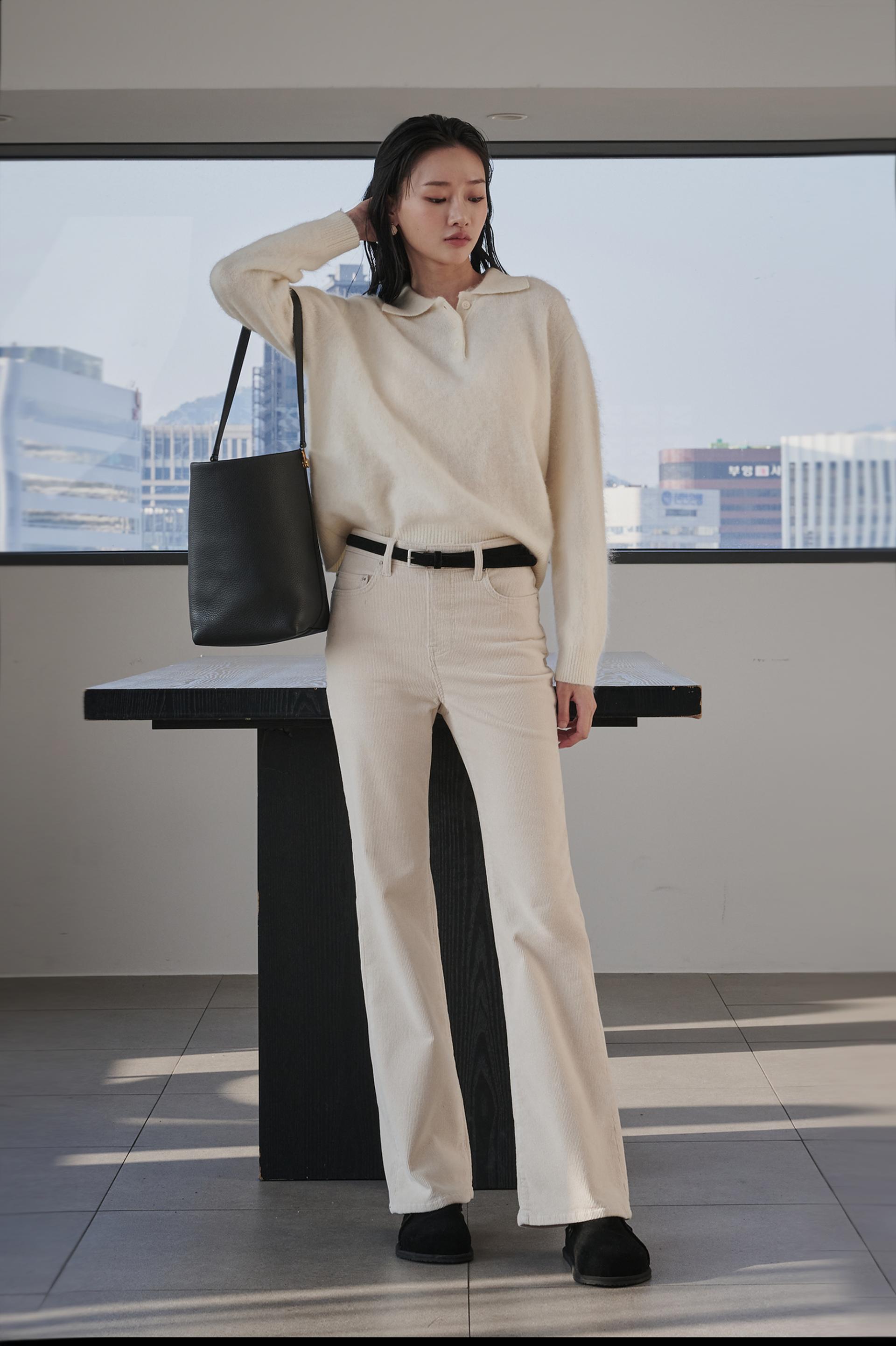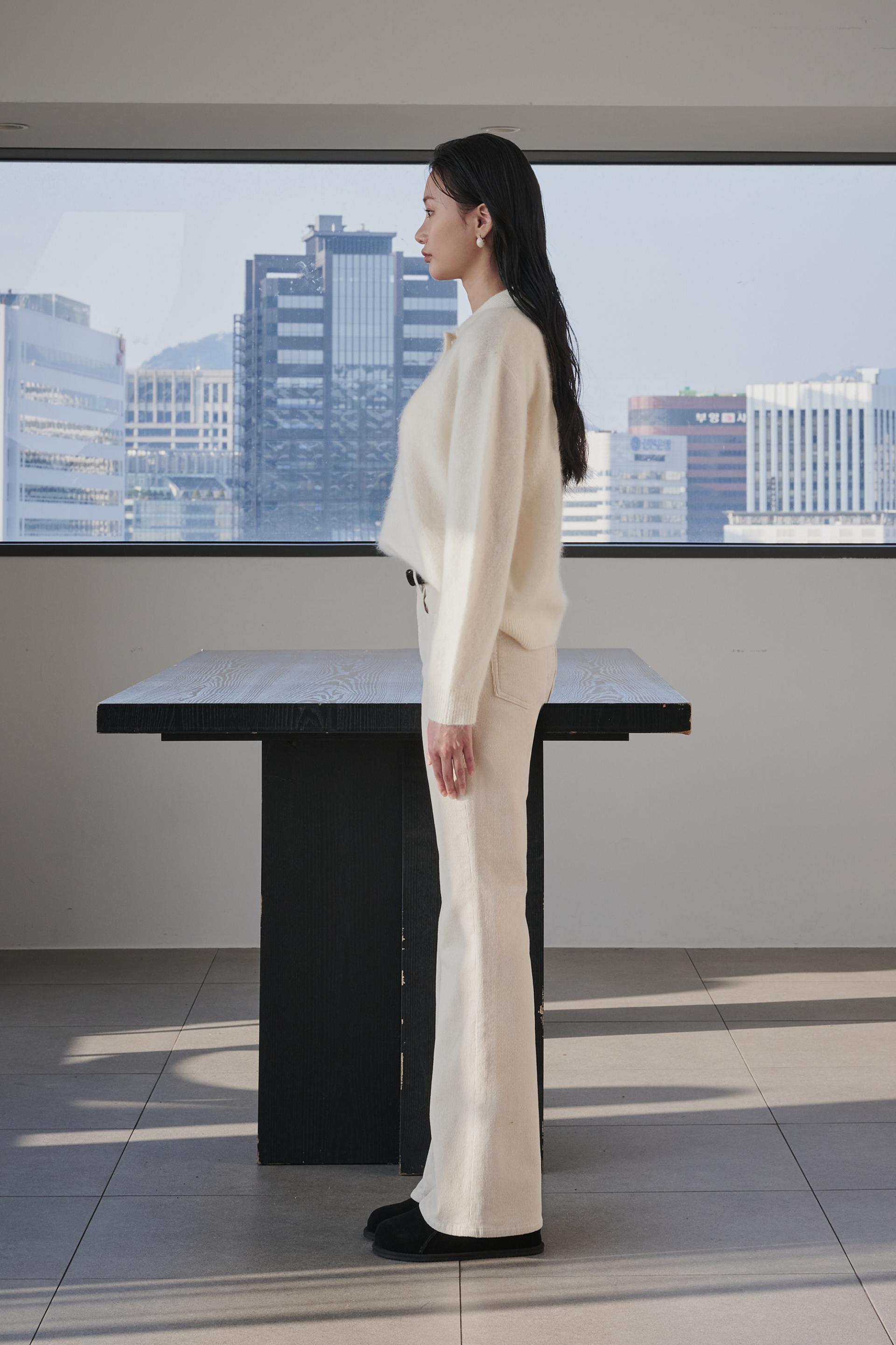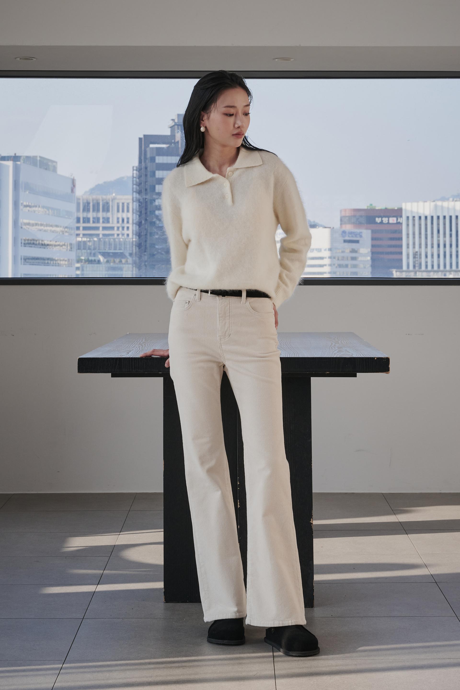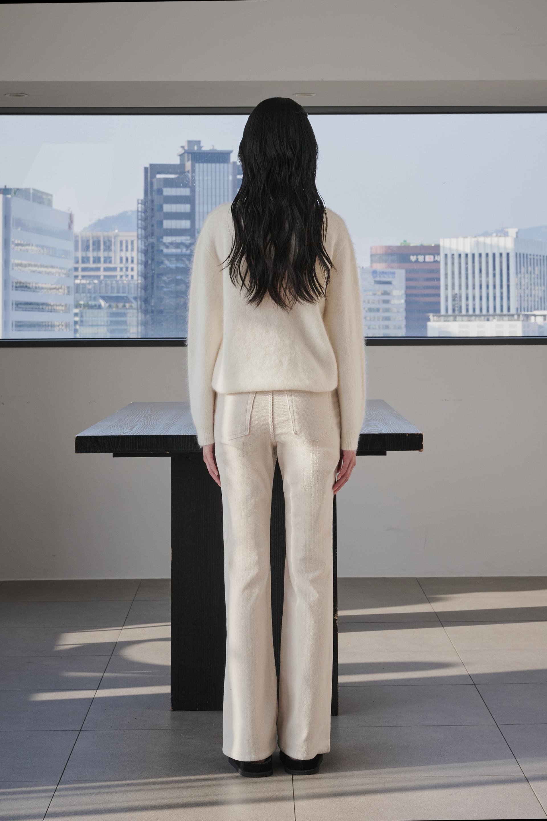 차분함과 포근함 그리고 맑은 아이보리의 고급스러움까지 섬세함이 살아있는 겨울 코듀로이 부츠컷진 입니다.