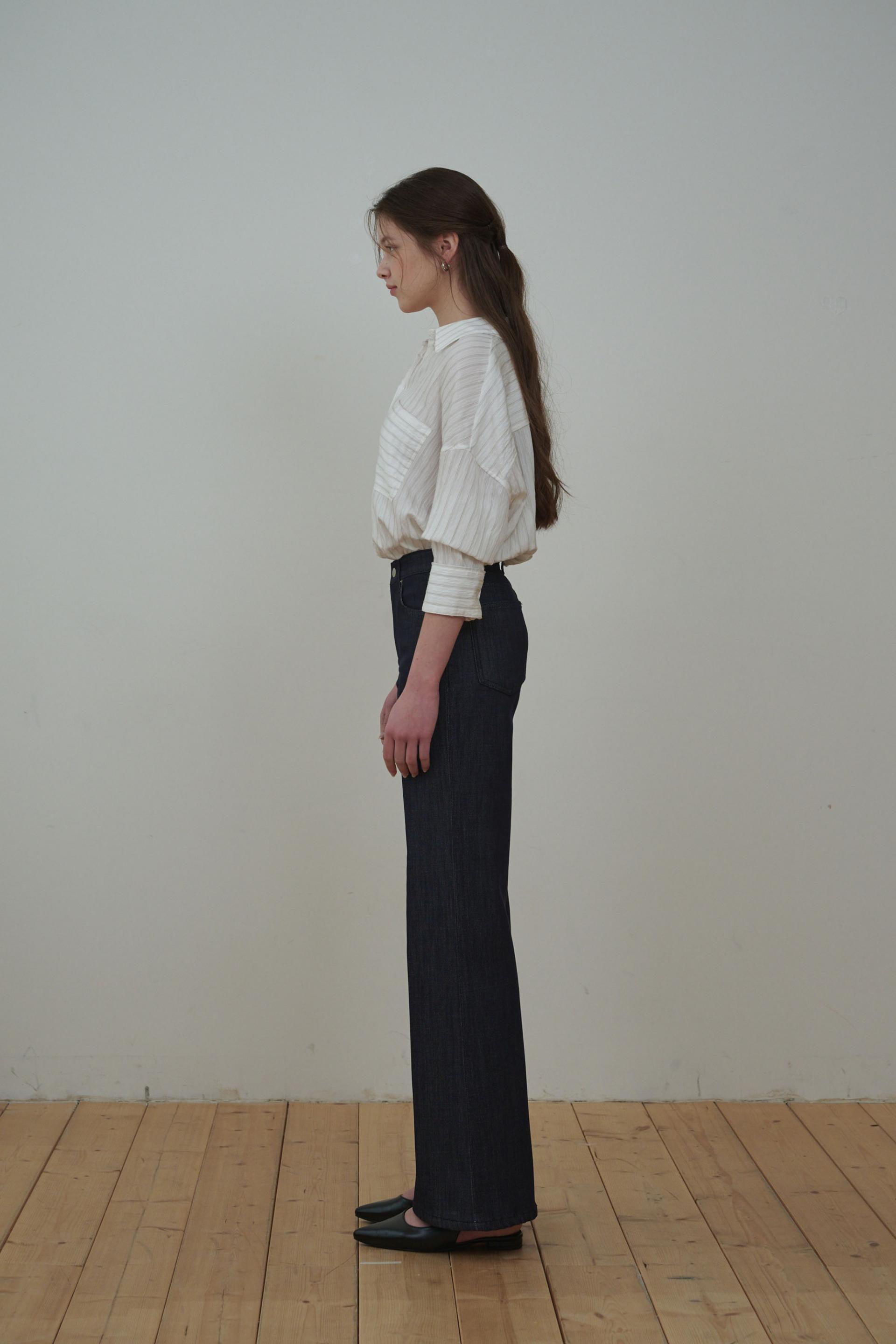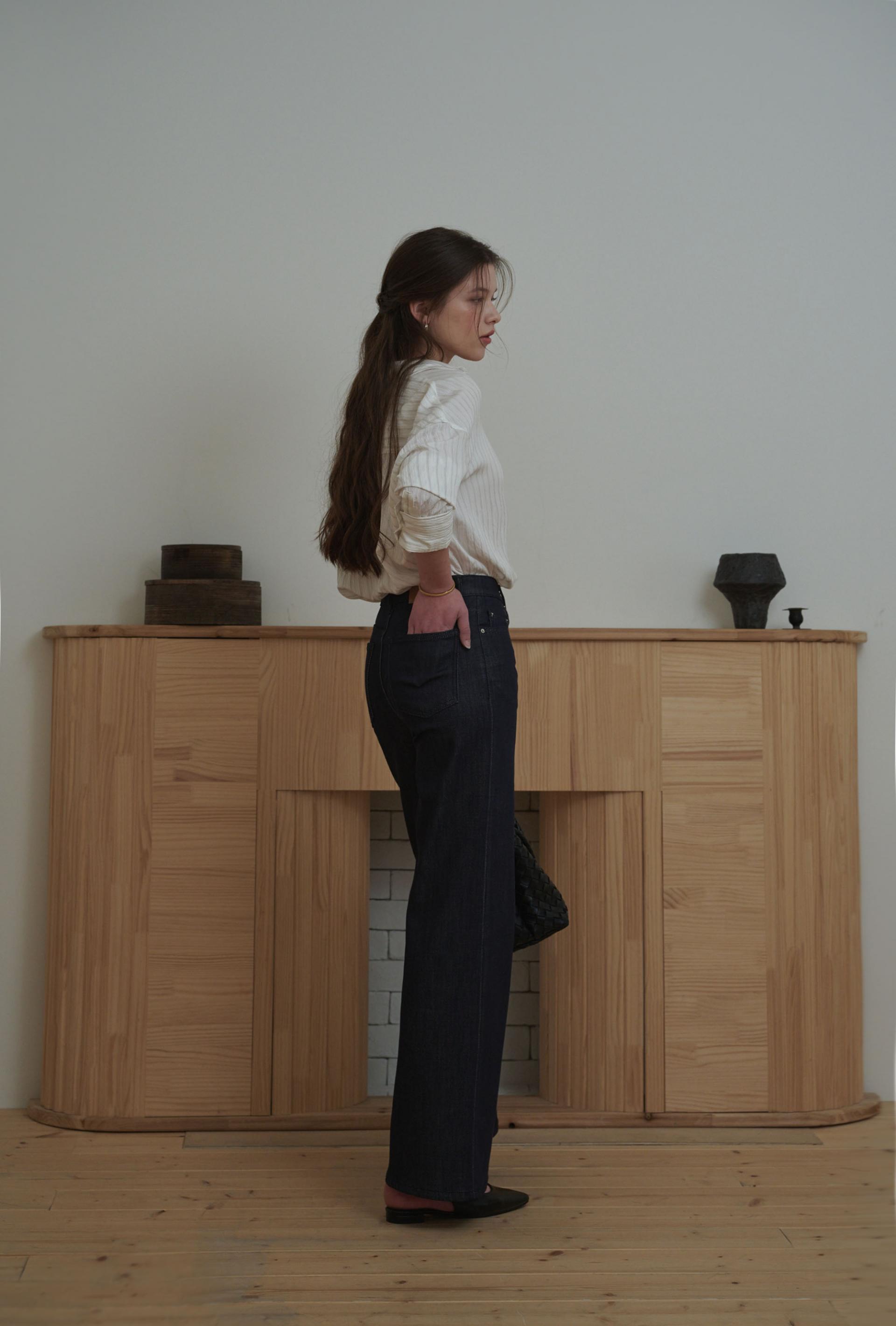 생지 데님 특유의 깊이 있는 컬러감은 시간이 지나도 쉽게 흐려지지 않으며, 차분하고 고급스러운 분위기를 유지해줍니다.