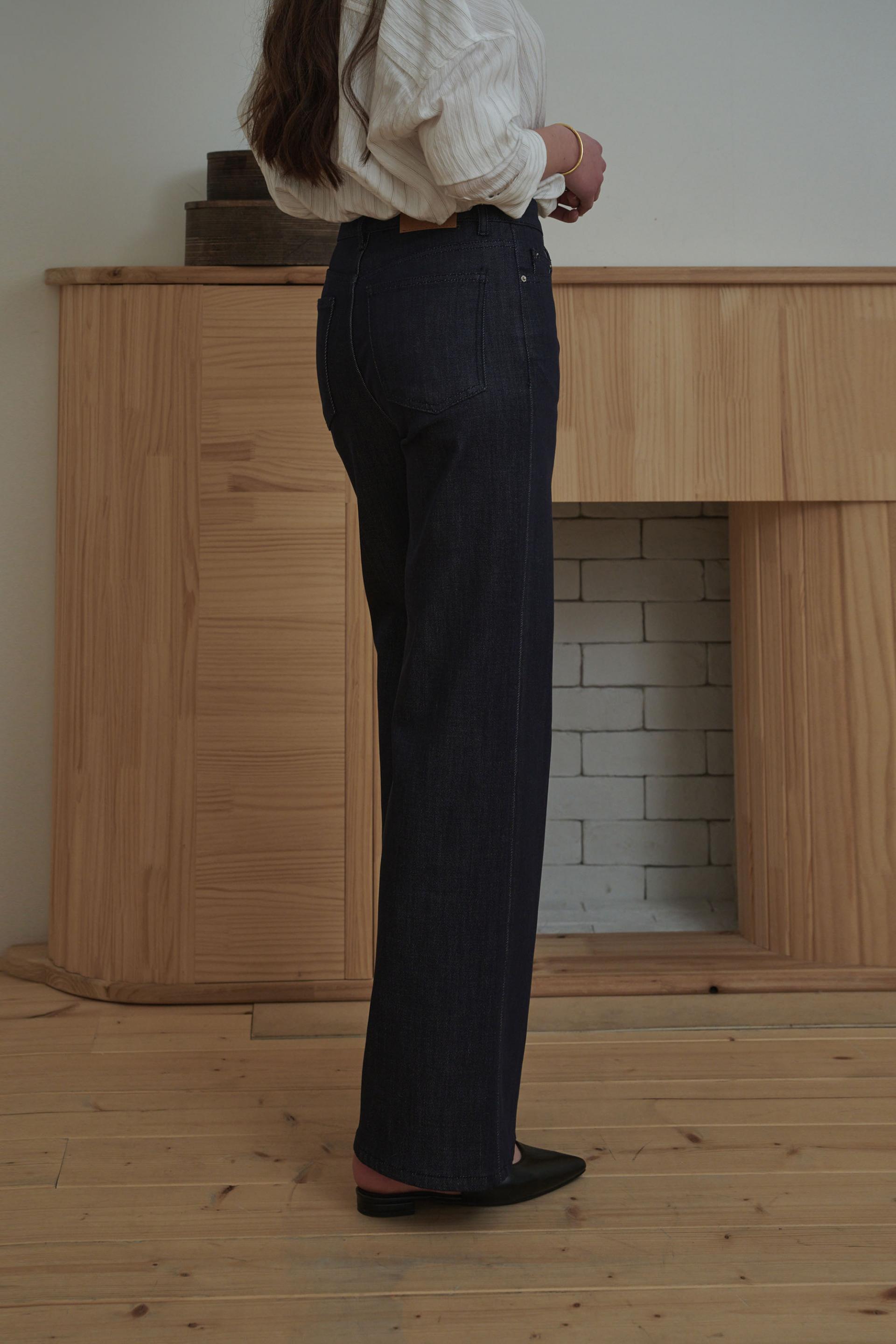 갖춰 입은 듯 완성되는 데님 슬랙스를 경험해 보세요.