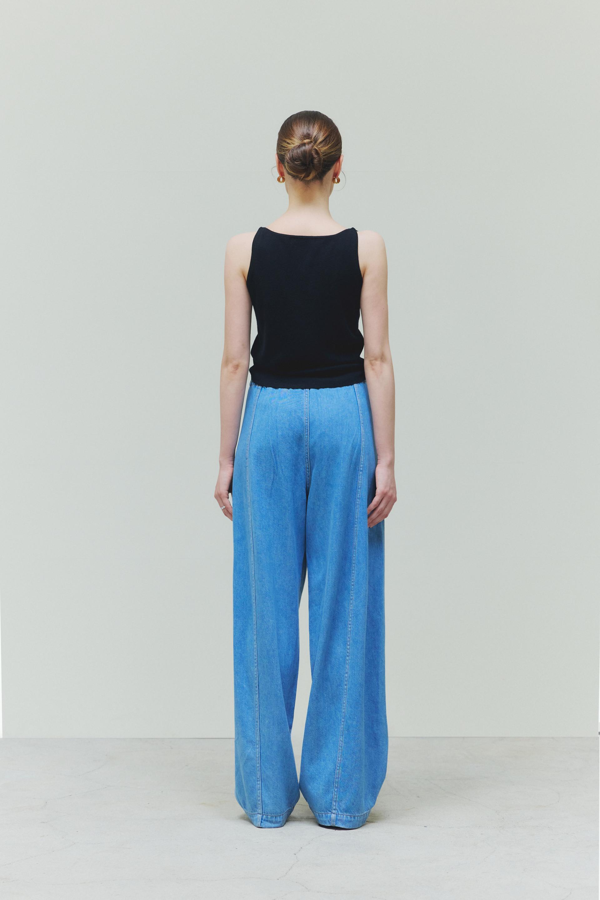 유니크한 절개라인과 빈티지한 블루 워싱의 조화가 매력적인 루즈핏 밴드 절개진 입니다.