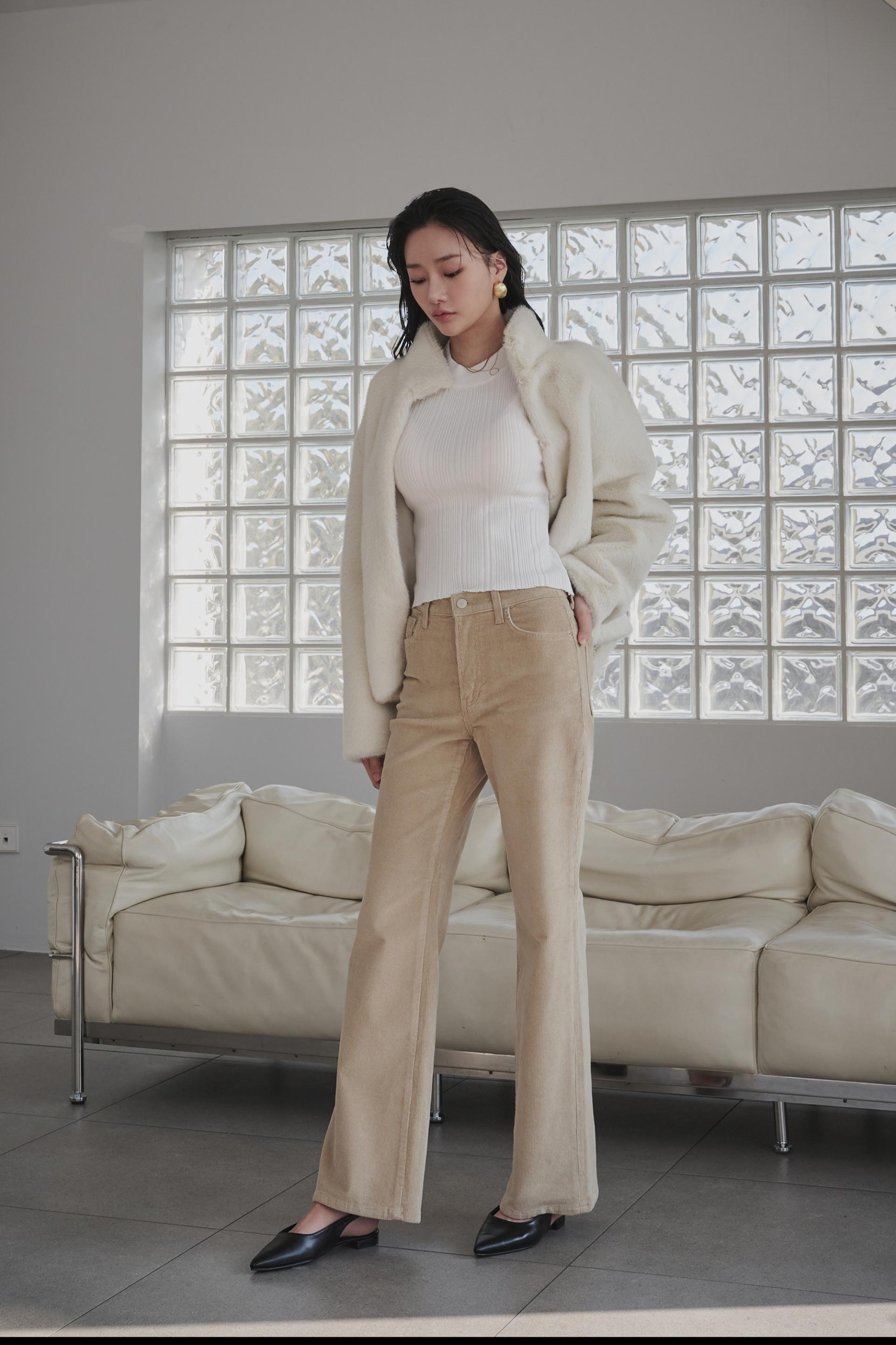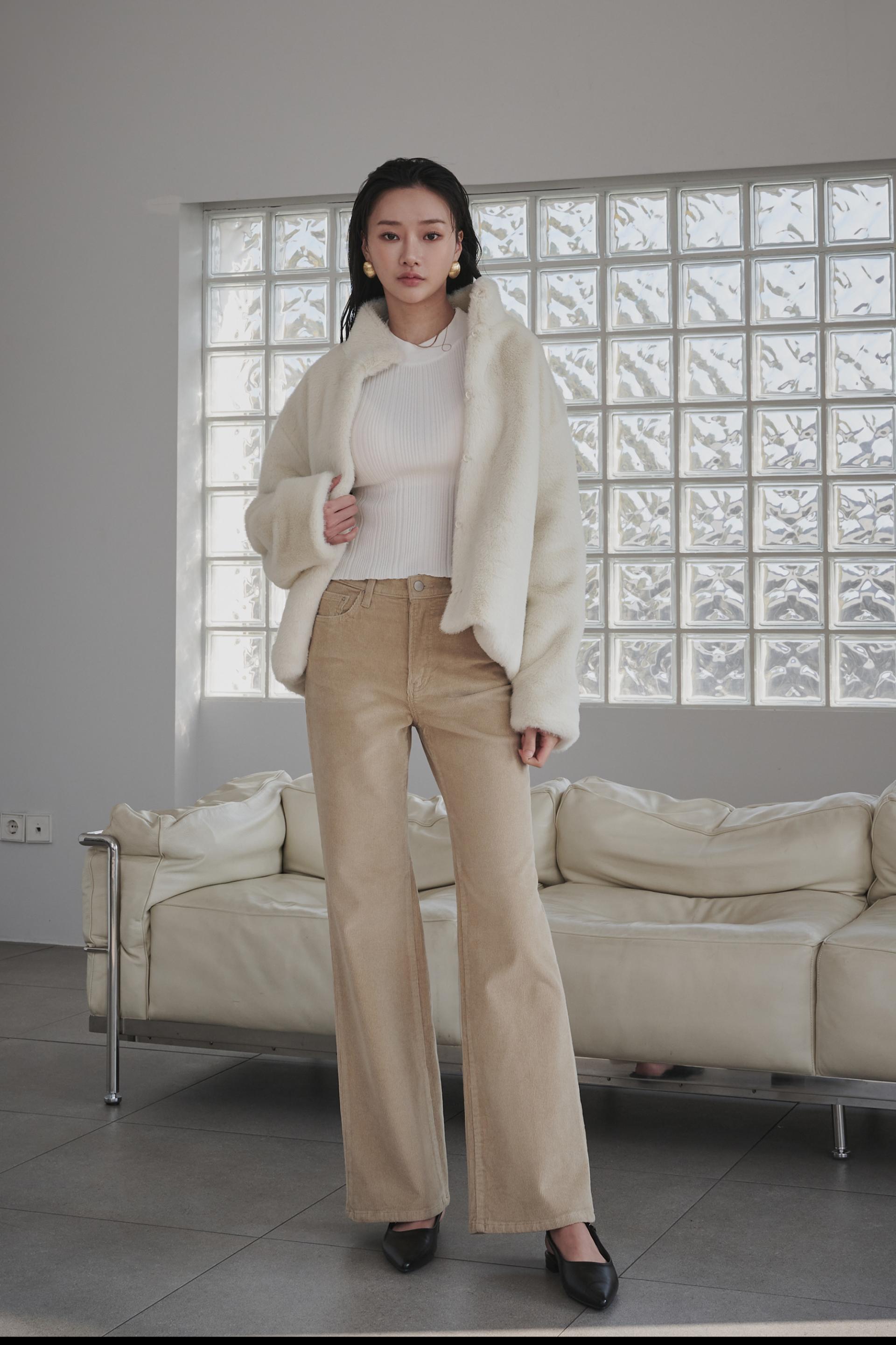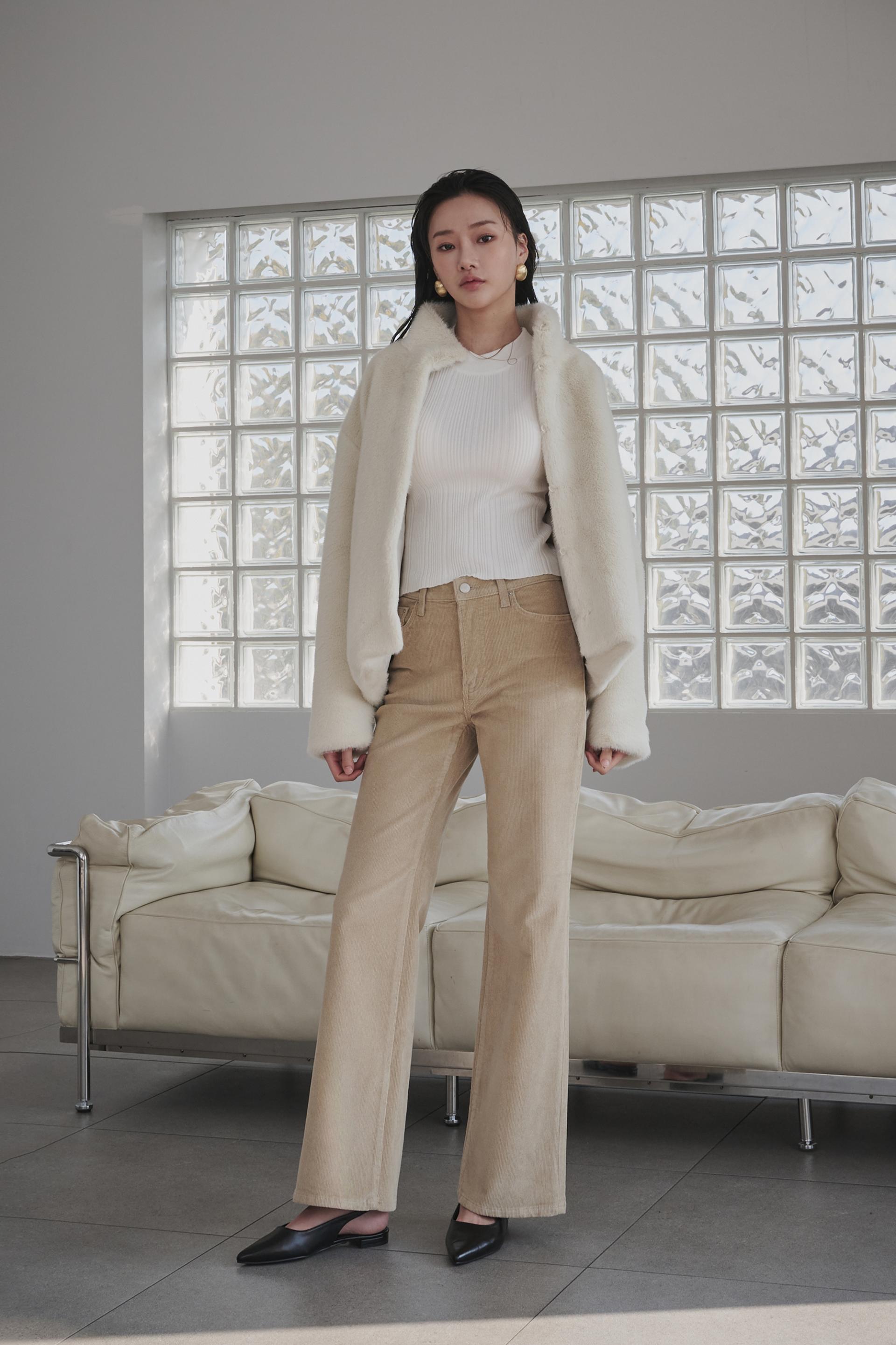 겨울 저녁,공간을 은은하게 채우는 따뜻한 조명처럼 부드럽고 차분한 분위기를 담은 코듀로이 부츠컷진입니다.