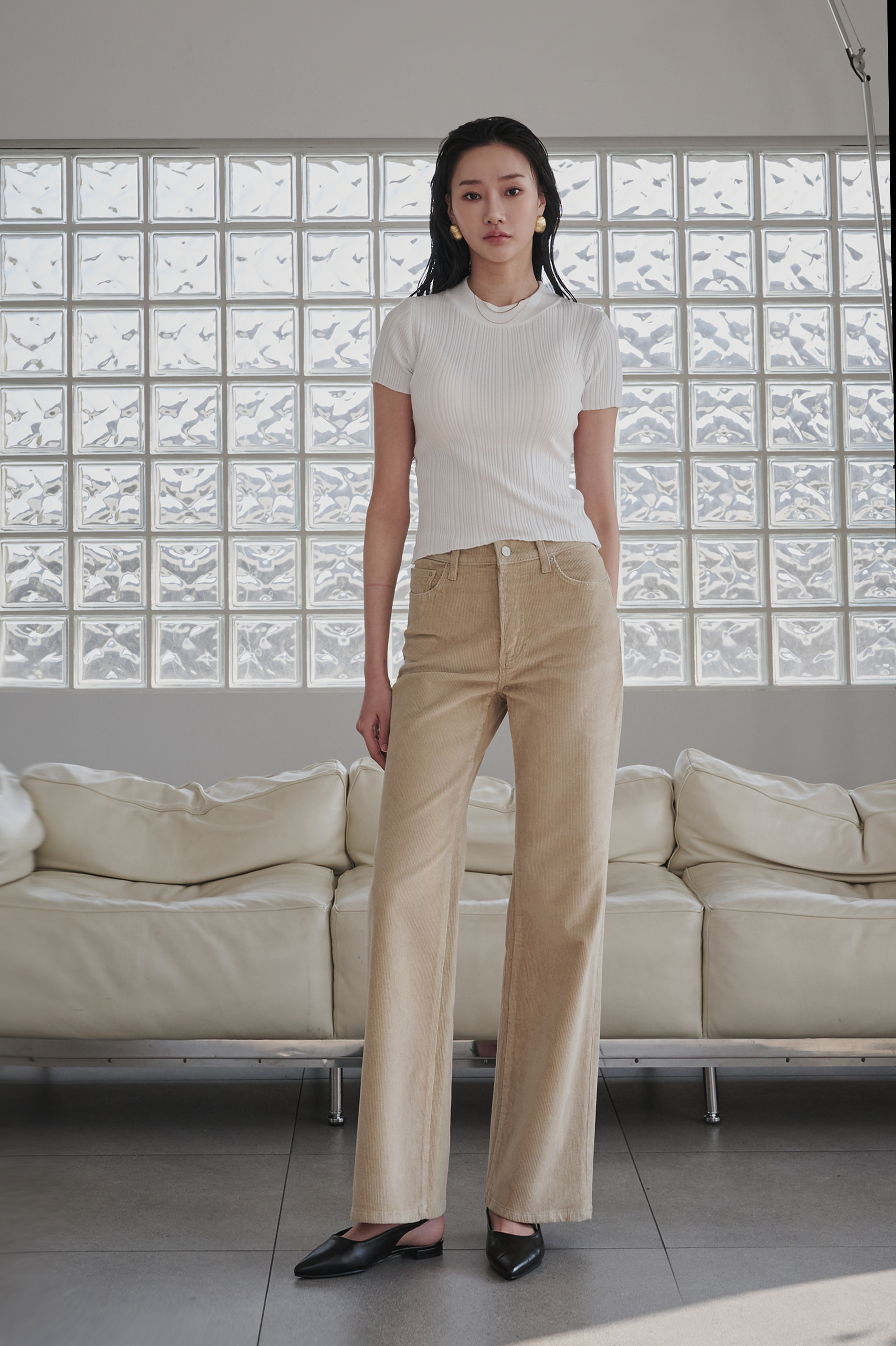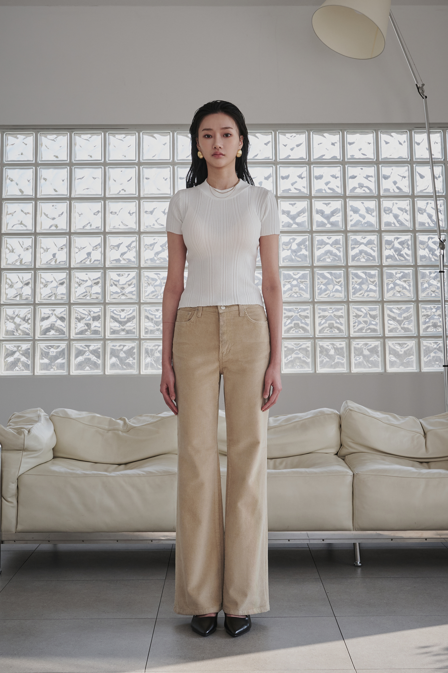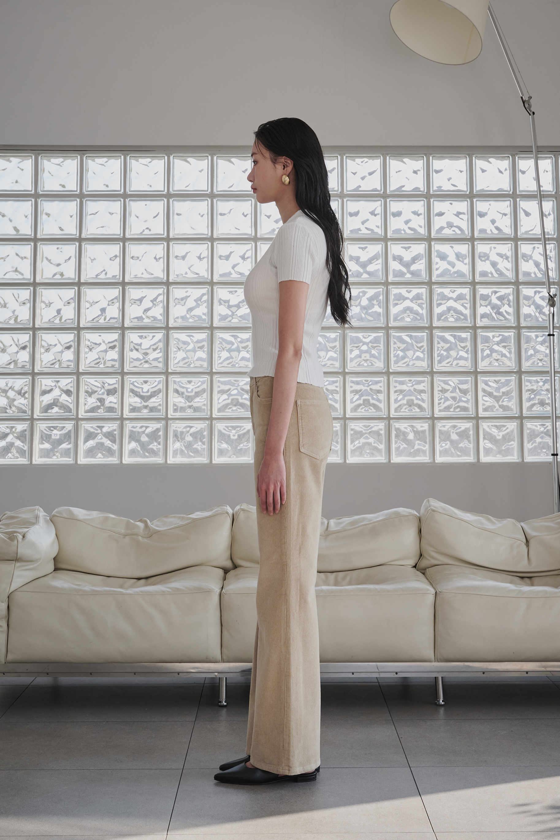겨울 저녁,공간을 은은하게 채우는 따뜻한 조명처럼 부드럽고 차분한 분위기를 담은 코듀로이 부츠컷진입니다.